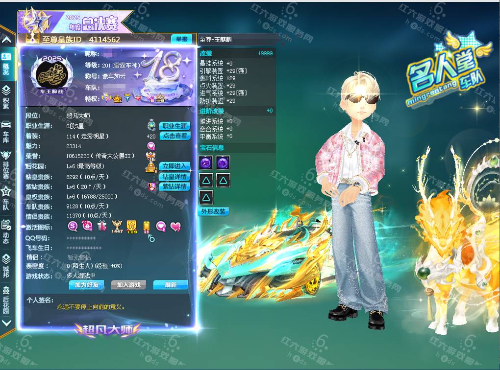 DS5077,红六更号裙762771576【电信一区】魅力2.3w,荣誉308w,3S车:双四至尊火麒麟/玉如意+29,中改暴风战舰激活8,超核逐魂者,T2:雷霆机甲,T1:刑天战斧,12A:劳斯莱斯,幻耀流光-绘梦,骑宠:仙兽-麒麟+10,套装:套装男16页/套装女11页,悬浮:铃兰蝶舞服饰女-发饰女,动作:招财玉如意女,晶石1个,名人堂车队挂饰,10560R,