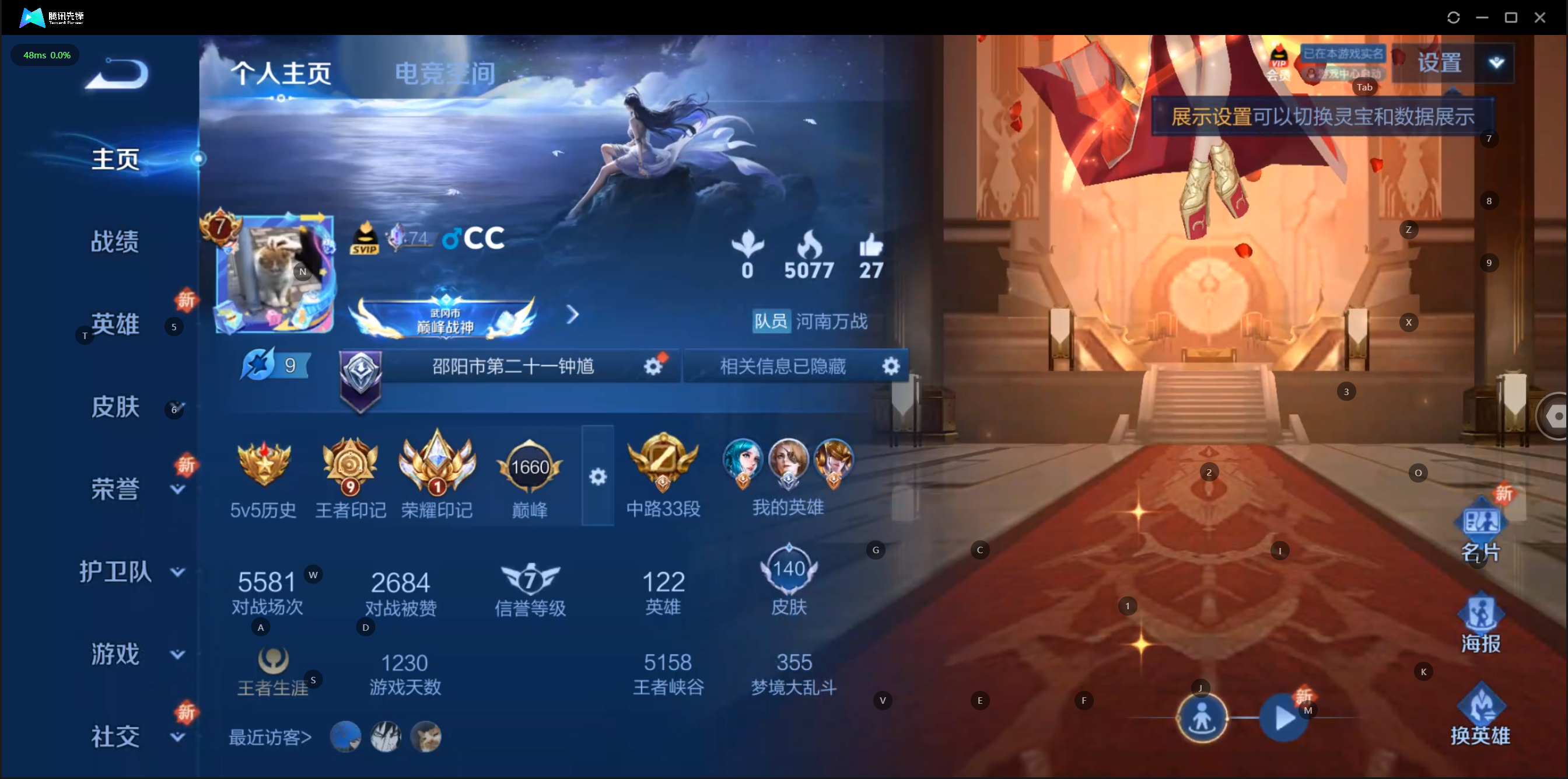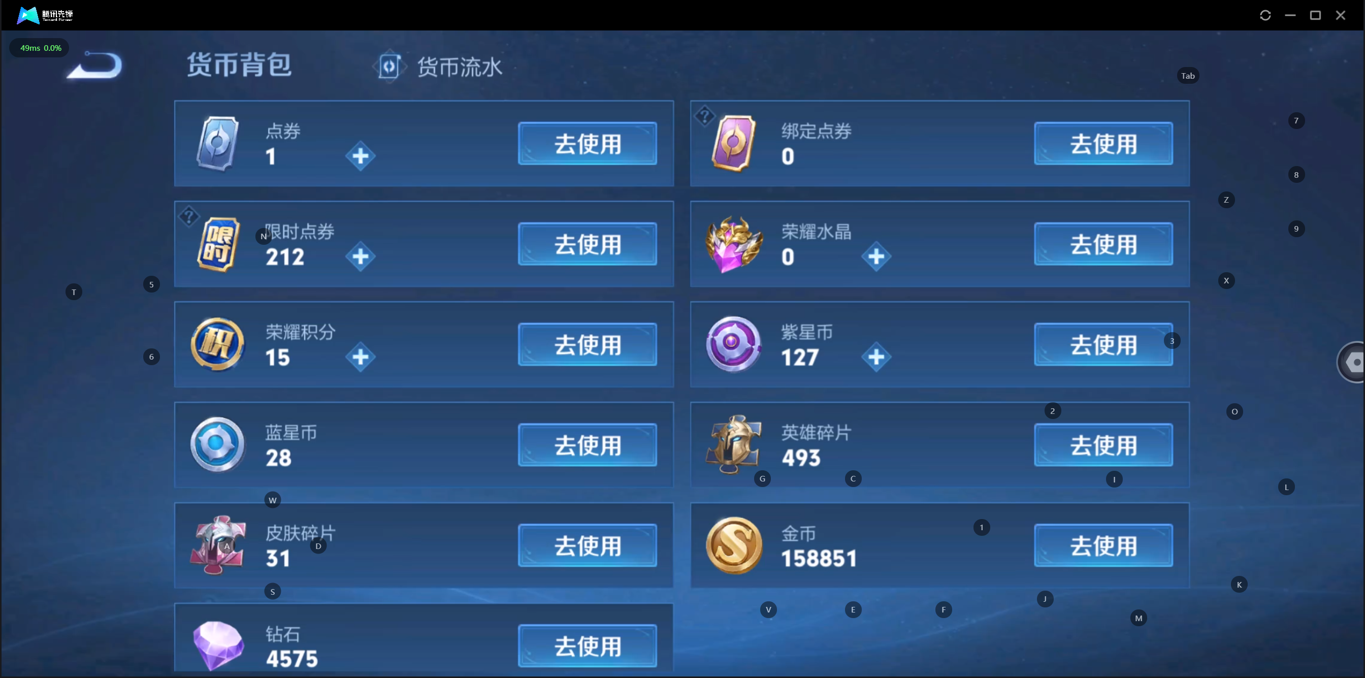 W10022【安卓区V8】可二次实名,英雄104,皮肤161,典藏:李白鸣剑.曳