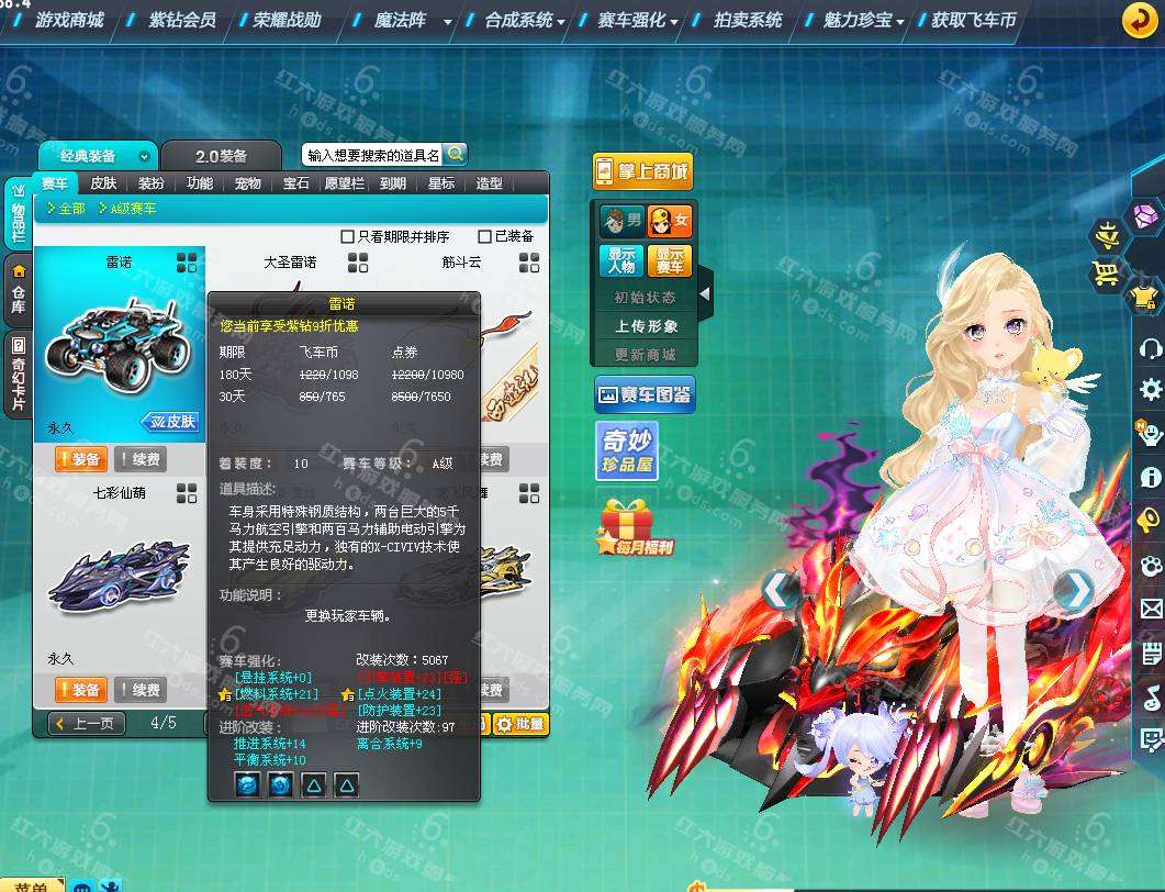 DS3744,红六更号裙762771576【电信一区】魅力1.4w,荣誉345w,皇族5级,紫钻6级,S车*6:三四至尊影龙/烛龙/青龙+29,双四爆天雷诺(紫夜玄隐阳焱碧渊澄明千里鸿钧)+29,至尊盘龙,斗战圣佛,龙胆逆鳞,暗影龙骑,T2:悟空齐天大圣1级,雷霆机甲,A车*16:雷诺,大圣雷诺,骑宠*12:小兰仙+10,人鱼公主+7,坐骑*5,套装男31页,浮生世语/庄生晓梦/璀璨星芒/鱼夜情缘/宫宴黑玫/炫彩金刚/微光幻蝶/青龙占星/应龙驭风/烛龙弄焰/冰夷踏浪 /熊猫警探/空谷幽兰/金玉良缘发饰,套装女21页,海域浪铃/炫彩金刚/烛龙弄焰/白骨晶晶/微光幻蝶/青龙占星/冰夷踏浪/应龙驭风,8250R,