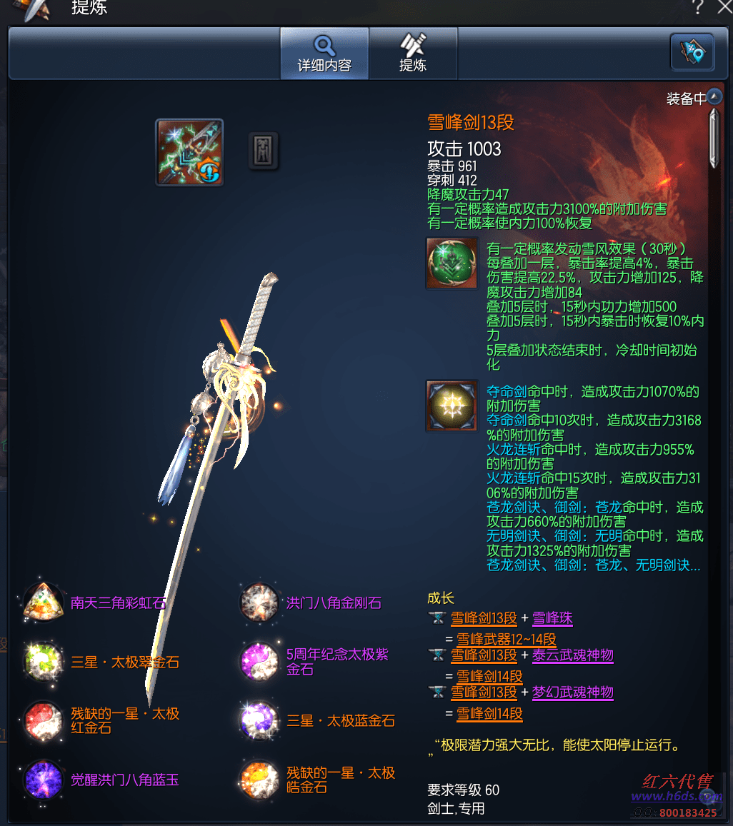 11530,电二惊鸿舞剑士,侠义团93段,三星太极石x2,雪峰元气石12段,征伐真气石11段,星皇剑11段,雪峰剑13段,极限卓越天目戒指3段,极限卓越邪花耳环3段,极限卓越邪花项链3段,光雾手镯12段,狂天腰带12段,天佑手套12段,觉醒极花秘功牌8段,觉醒无穷神功牌8段,觉醒武乾神功牌8段,凤凰灵3段,毁灭之梦幻魂12段,不灭之守护石2段,晨晖星11段,衣服175,,《起手3000万稳定1200万》4200R,