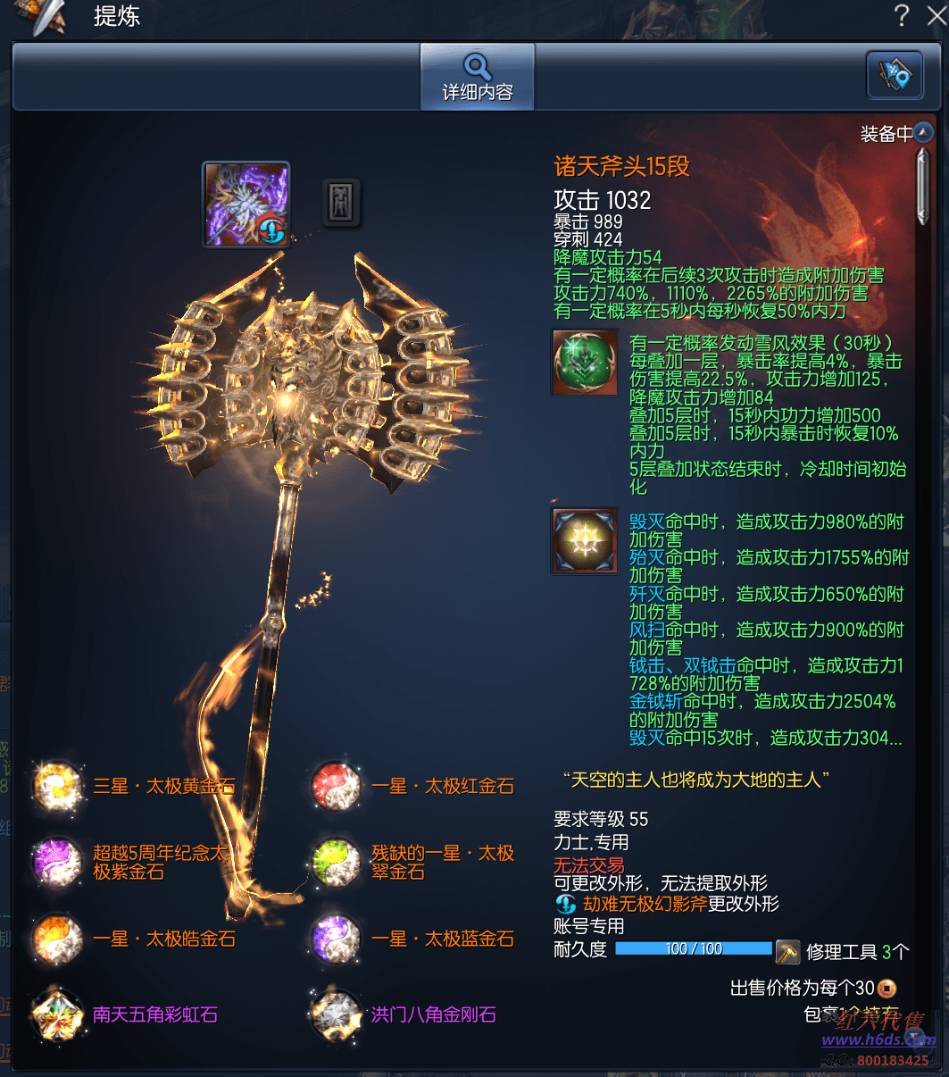 J15399,无日峰力士,侠义团67段,天罚真气石11段,雪峰元气石8段,狂天斧