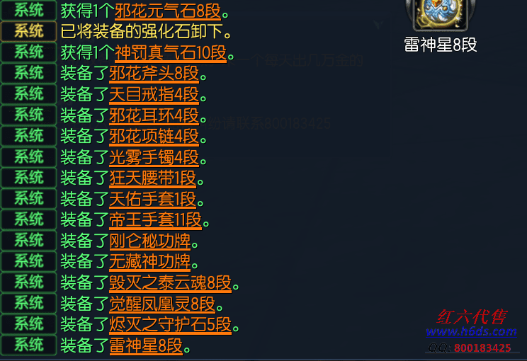 11671,双线UP火箭区电火行空力士,侠义团15段,邪花元气石8段,神罚真气石10段,邪花斧头8段,天目戒指4段,邪花耳环4段,邪花项链4段,光雾手镯4段,狂天腰带1段,天佑手套1段,帝王手套11段,刚仑秘功牌,无藏神功牌,毁灭泰云魂8段,觉醒凤凰灵8段,烬灭守护石5段,雷神星8段,衣服23, 999R,