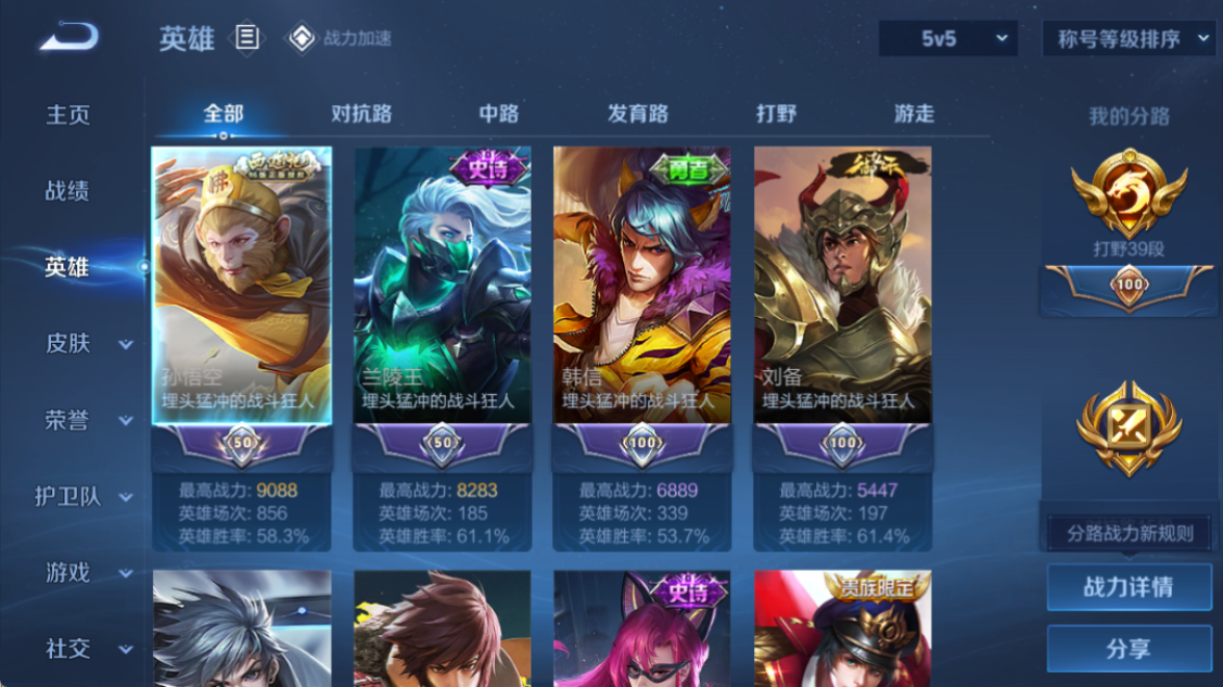 W10022【安卓区V8】可二次实名,英雄104,皮肤161,典藏:李白鸣剑.曳