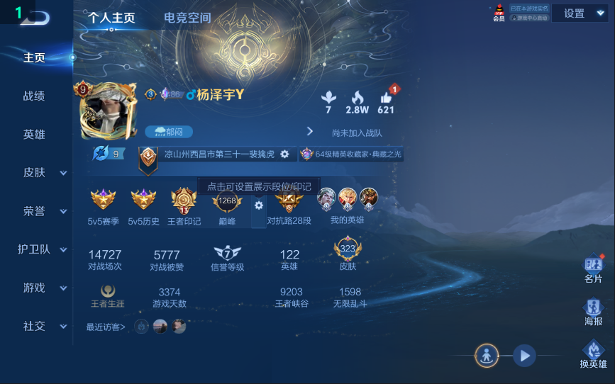 W10022【安卓区V8】可二次实名,英雄104,皮肤161,典藏:李白鸣剑.曳