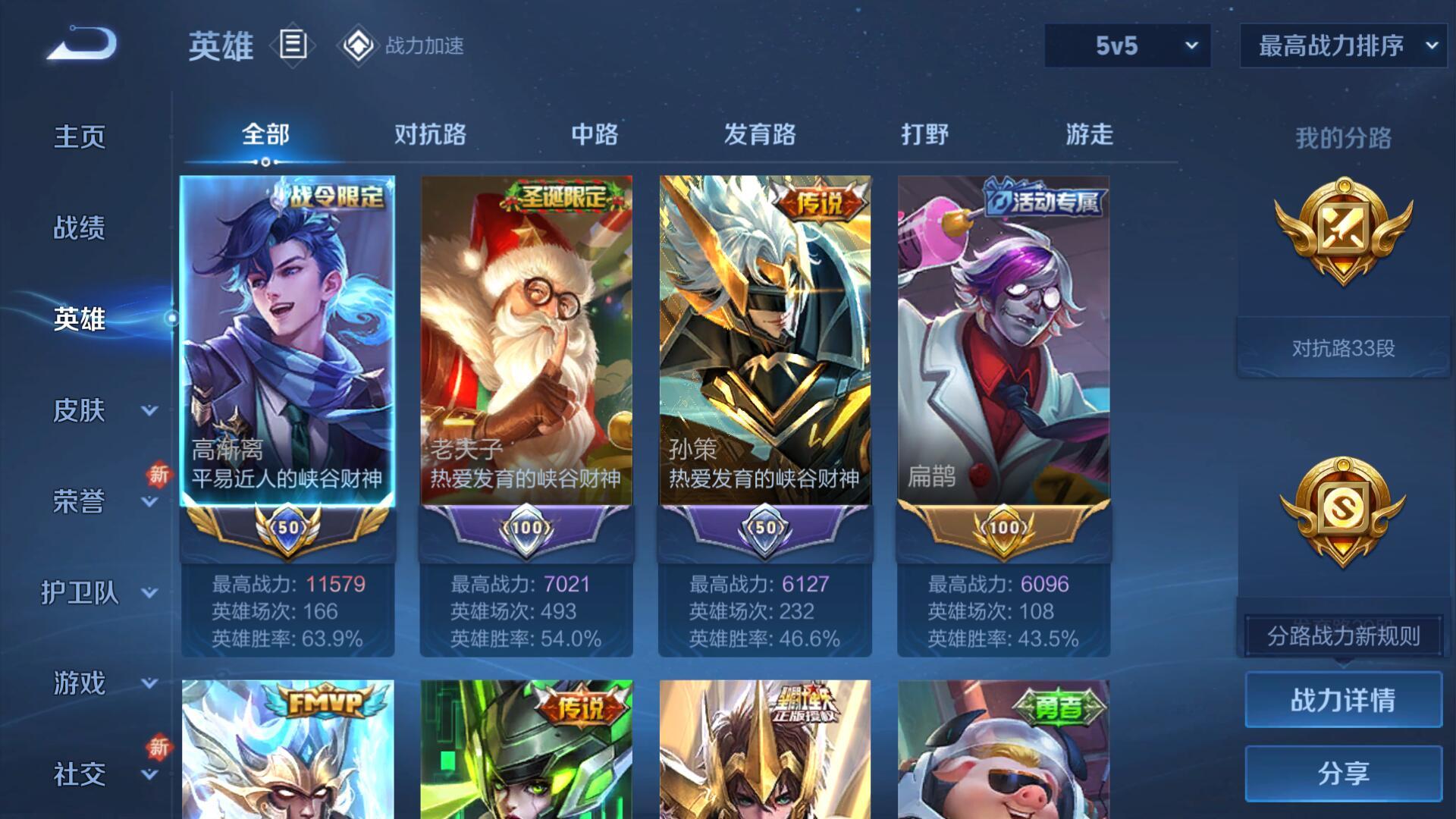 W10022【安卓区V8】可二次实名,英雄104,皮肤161,典藏:李白鸣剑.曳