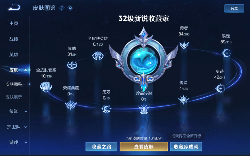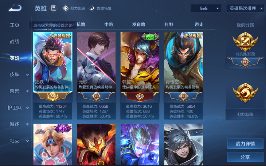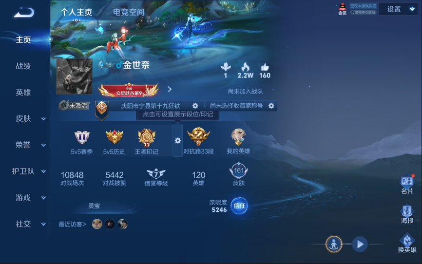 W10022【安卓区V8】可二次实名,英雄104,皮肤161,典藏:李白鸣剑.曳