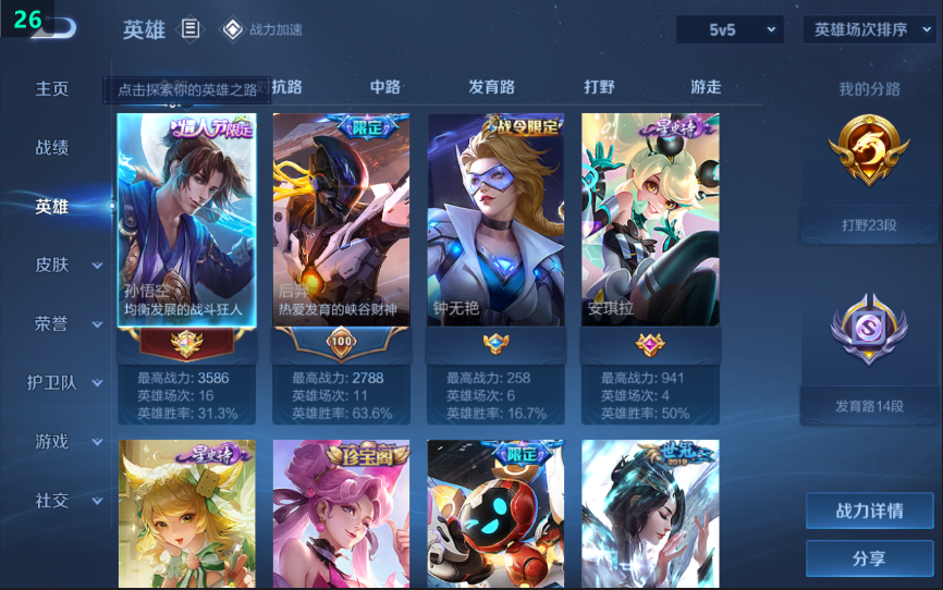 W10022【安卓区V8】可二次实名,英雄104,皮肤161,典藏:李白鸣剑.曳