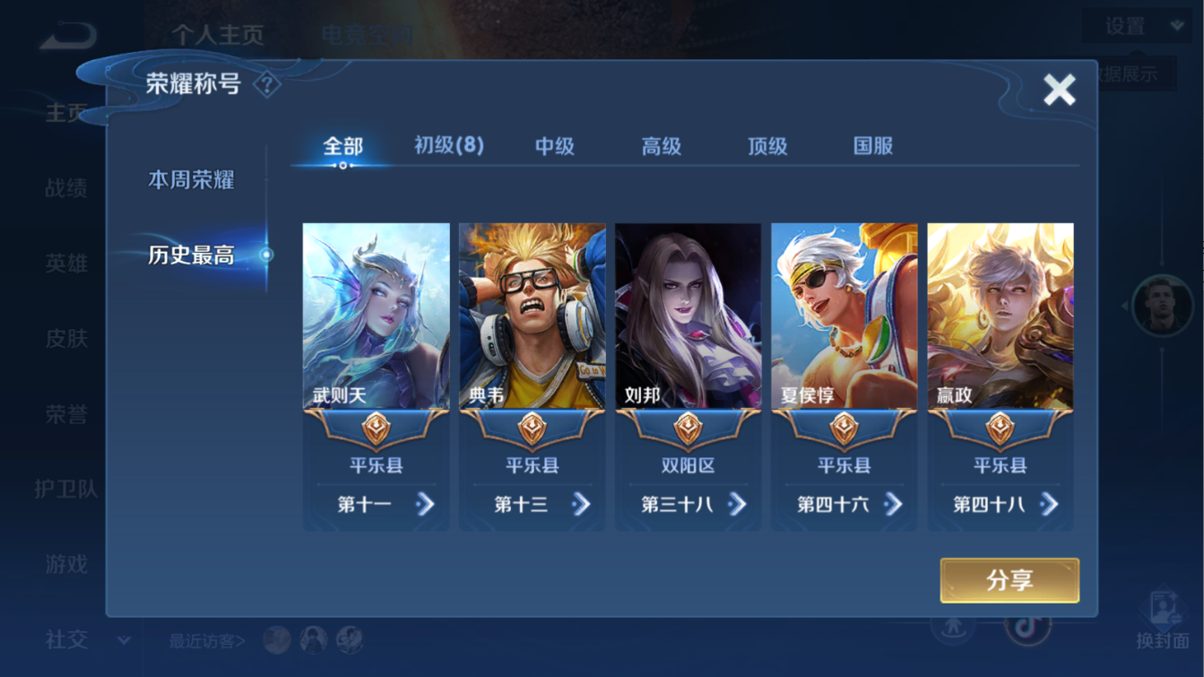 W10005,【安卓QQ】,V8,英雄84,皮肤93,典藏:全息碎影,凤求凰,(