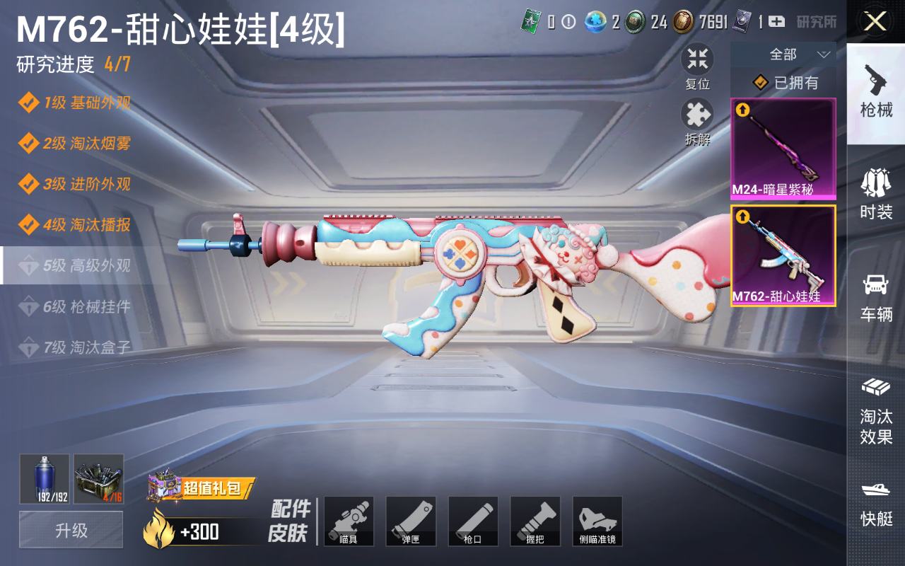 PX_1960224-可二次,等级49,39套装,67枪皮,1王牌印记,热力值23832,2车4粉2特效,兰博基尼银翼灰,海龙奔腾,4级M762甜心娃娃,4级M24暗星紫秘,暗星紫秘,甜心娃娃,精灵娃娃,酣梦娃娃,神秘黑猫,月蓝流光,绿翡凌光,焰山流火,冰川特警,M416暗星紫秘,AK