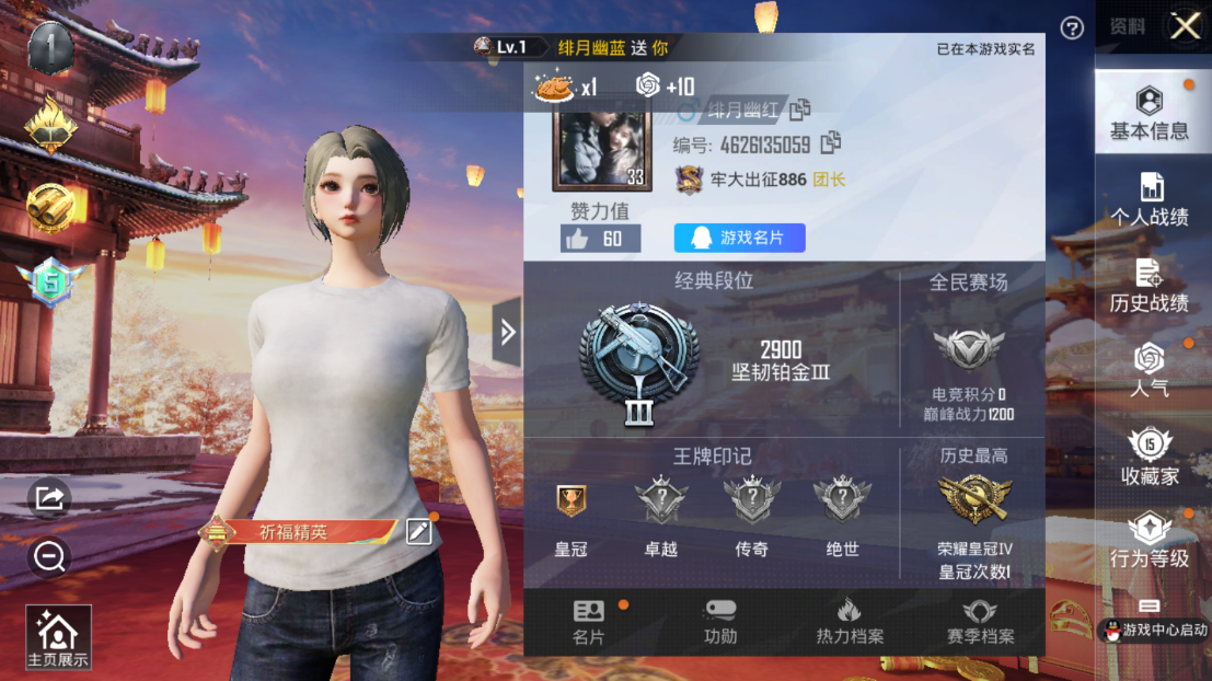 PX_1960285-可二次,等级33,22套装,30枪皮,热力值8908,3特效,满级满配AUG暖羊咩咩,满级满配GROZA镜光银凌,满级98K巳巳如意,临安公主,鱼渊荷华,破蛋小黄鸡,AKS鬼刀,汤姆逊暗夜鎏金,1粉降落伞,1淘汰盒子