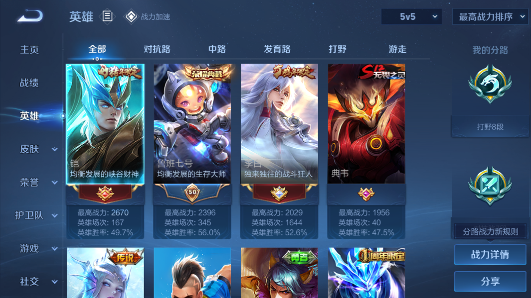 W10022【安卓区V8】可二次实名,英雄104,皮肤161,典藏:李白鸣剑.曳