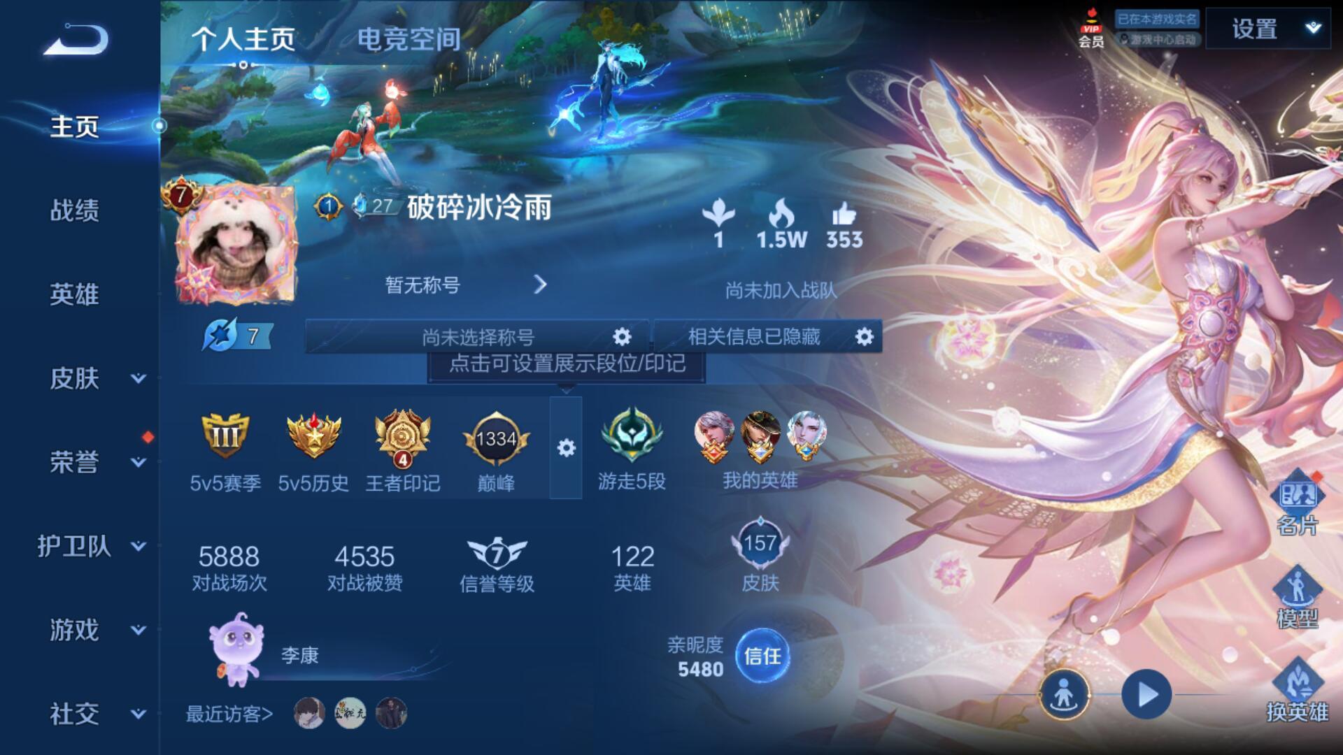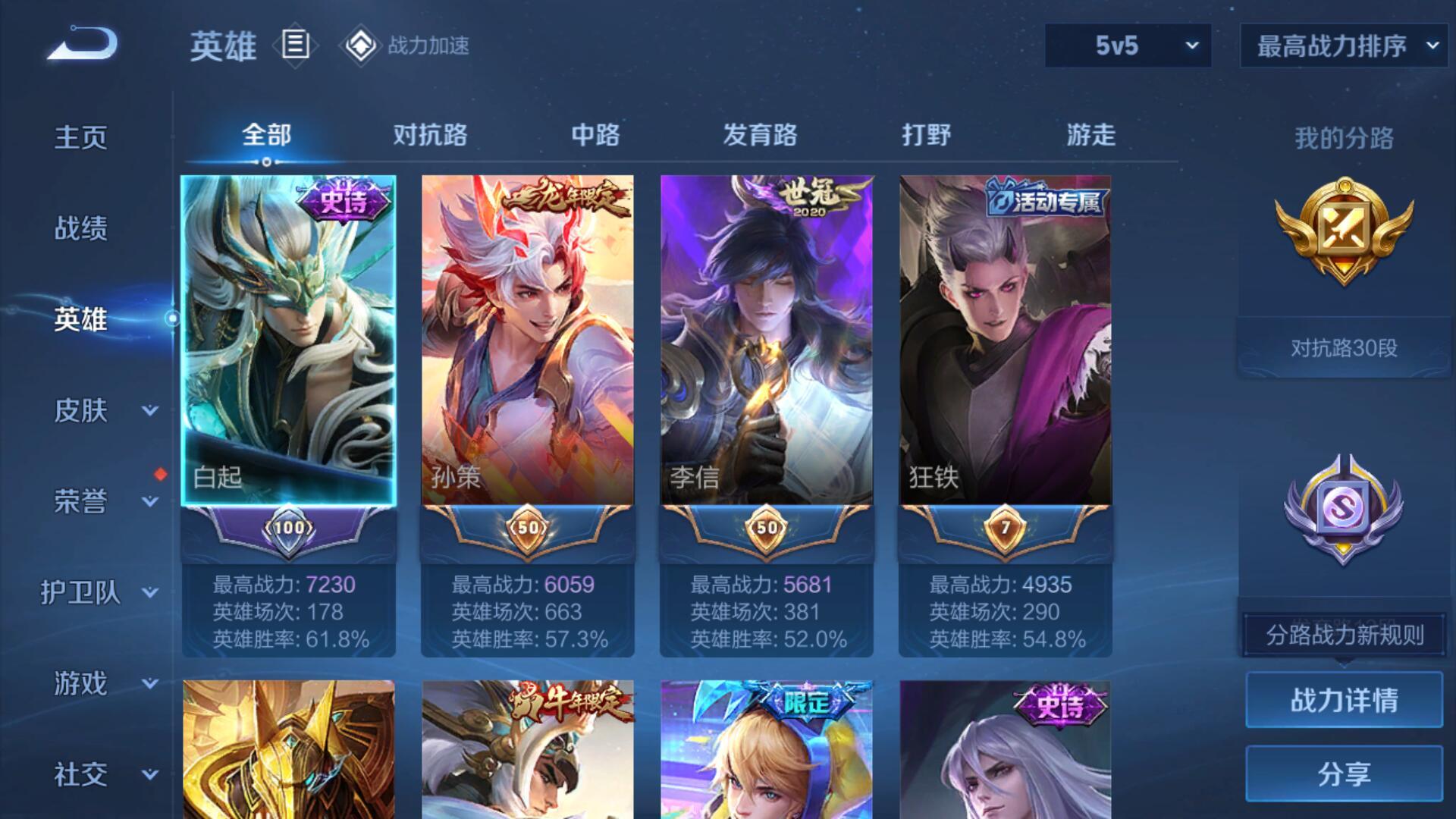 W10022【安卓区V8】可二次实名,英雄104,皮肤161,典藏:李白鸣剑.曳