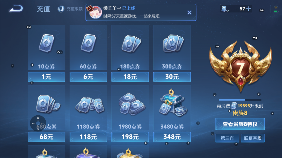 W10025【官方代售】服务器:苹果QQ,V7,英雄105,皮肤191(星传说: