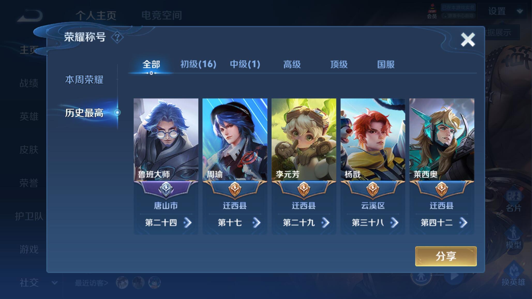W10022【安卓区V8】可二次实名,英雄104,皮肤161,典藏:李白鸣剑.曳