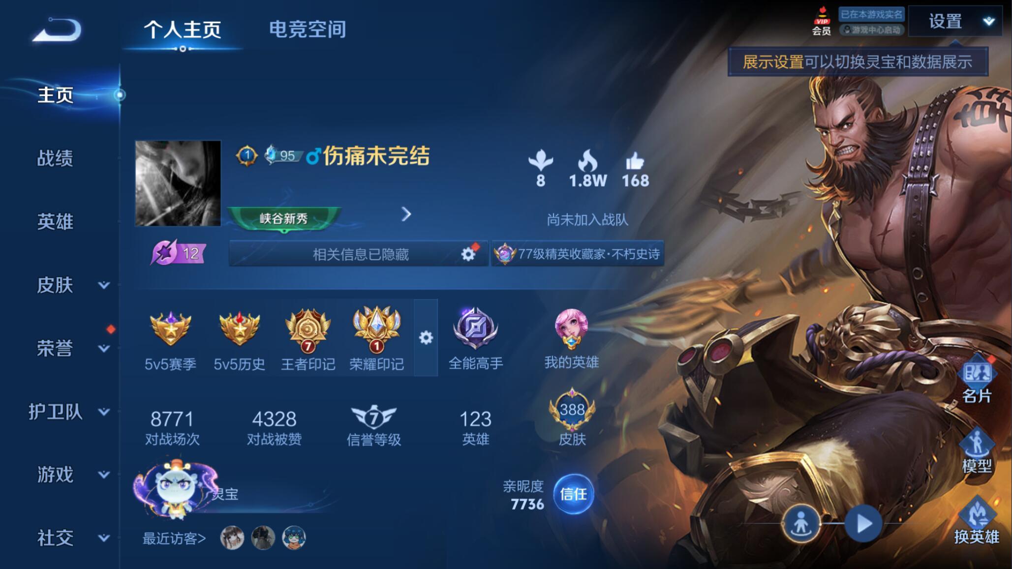 W10005,【安卓QQ】,V8,英雄84,皮肤93,典藏:全息碎影,凤求凰,(