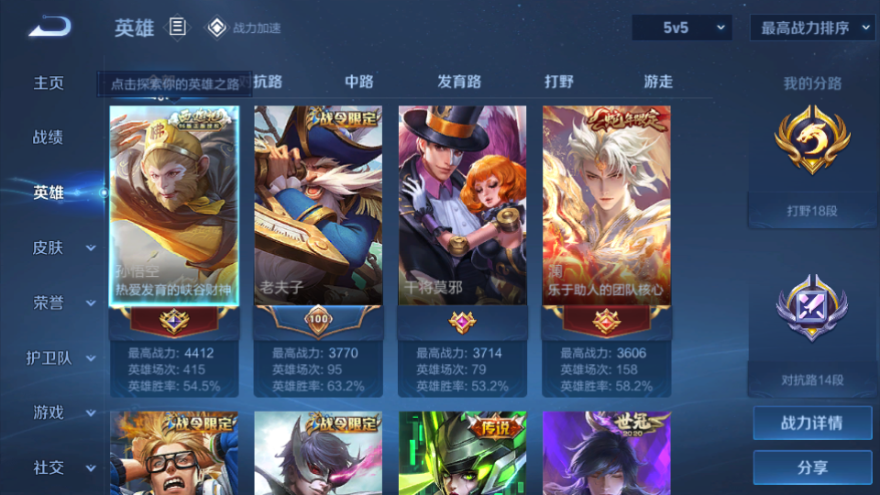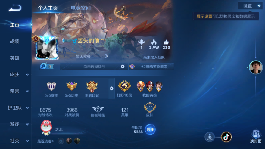 W10022【安卓区V8】可二次实名,英雄104,皮肤161,典藏:李白鸣剑.曳