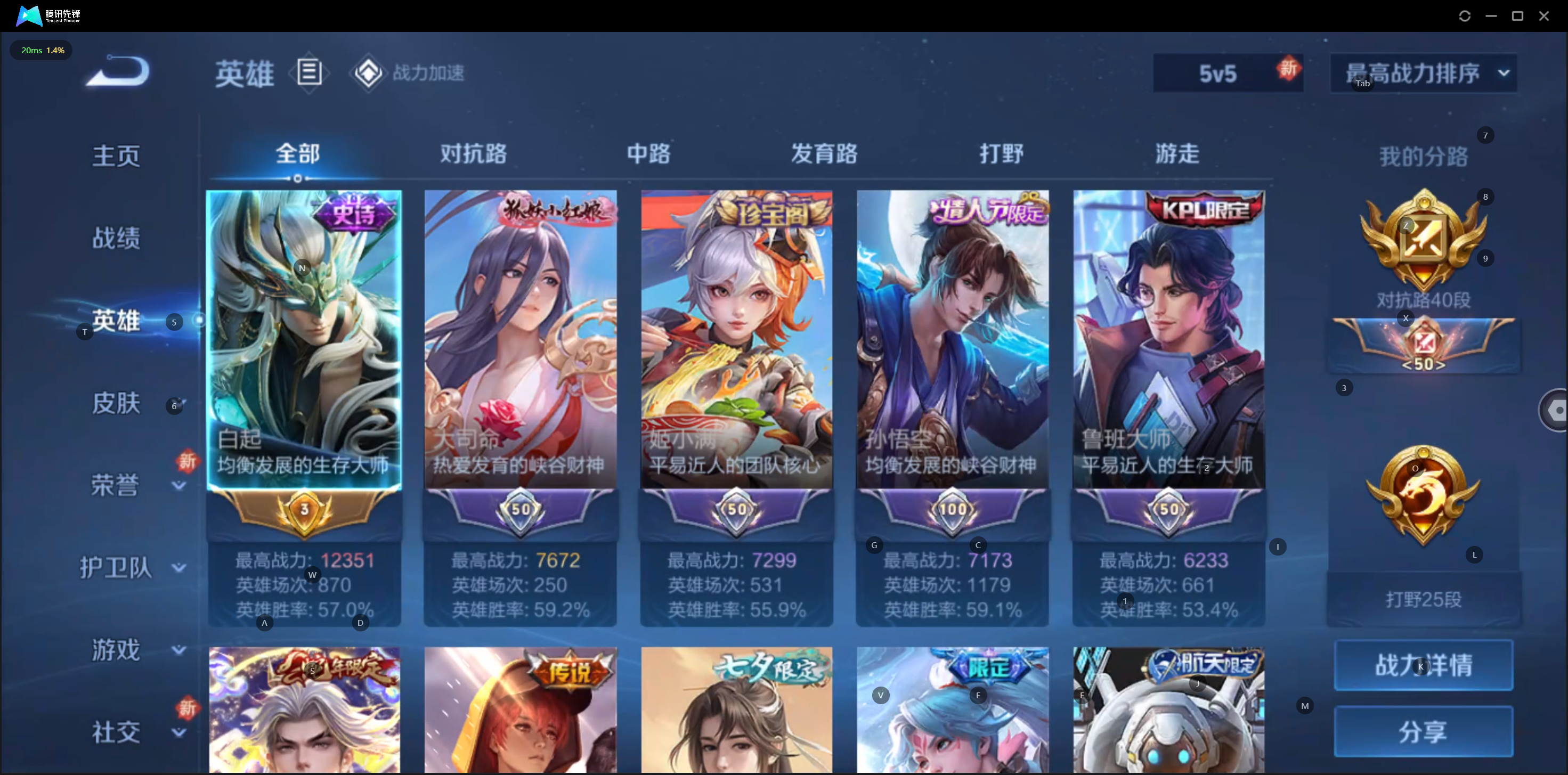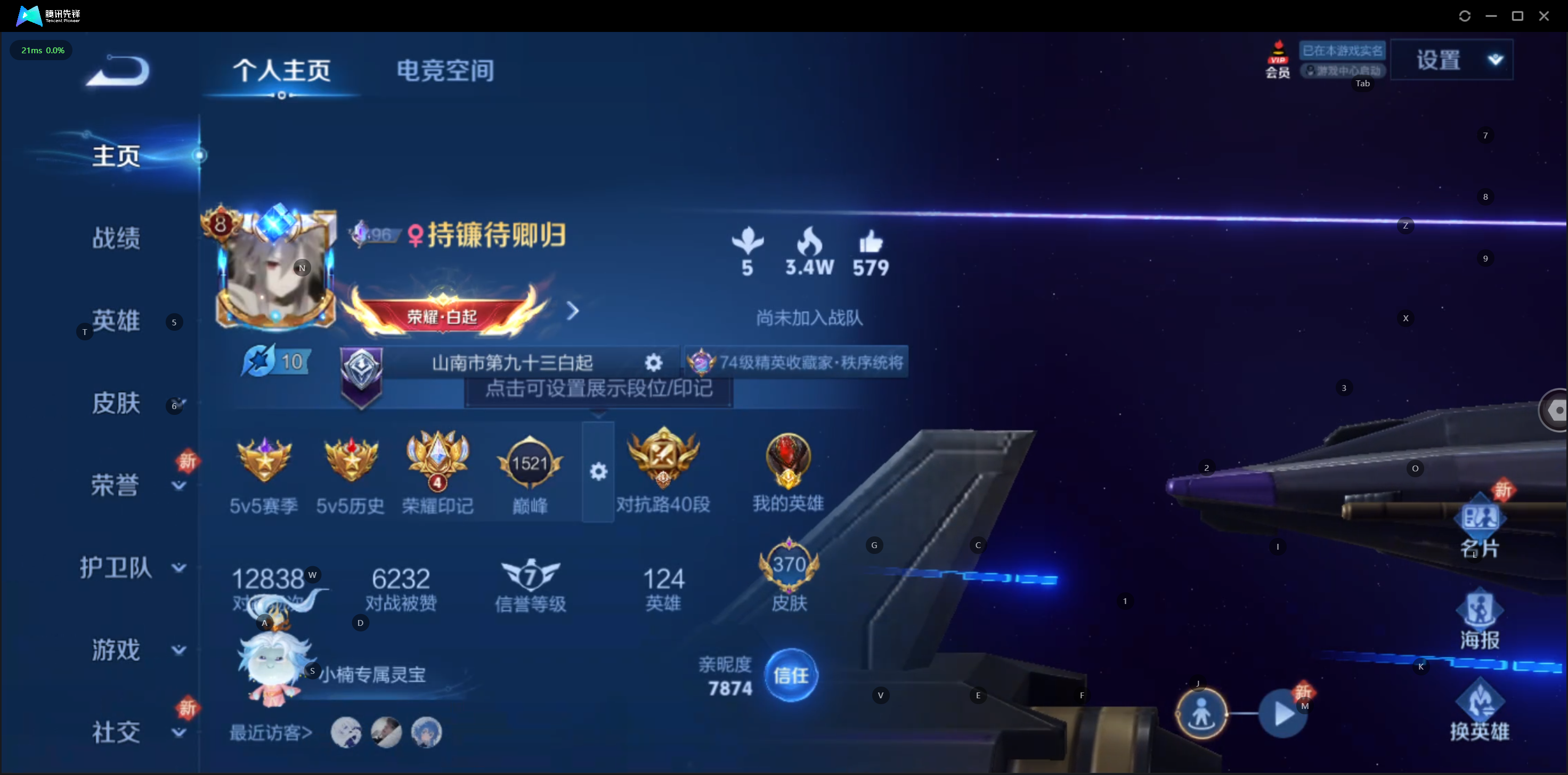 W10022【安卓区V8】可二次实名,英雄104,皮肤161,典藏:李白鸣剑.曳
