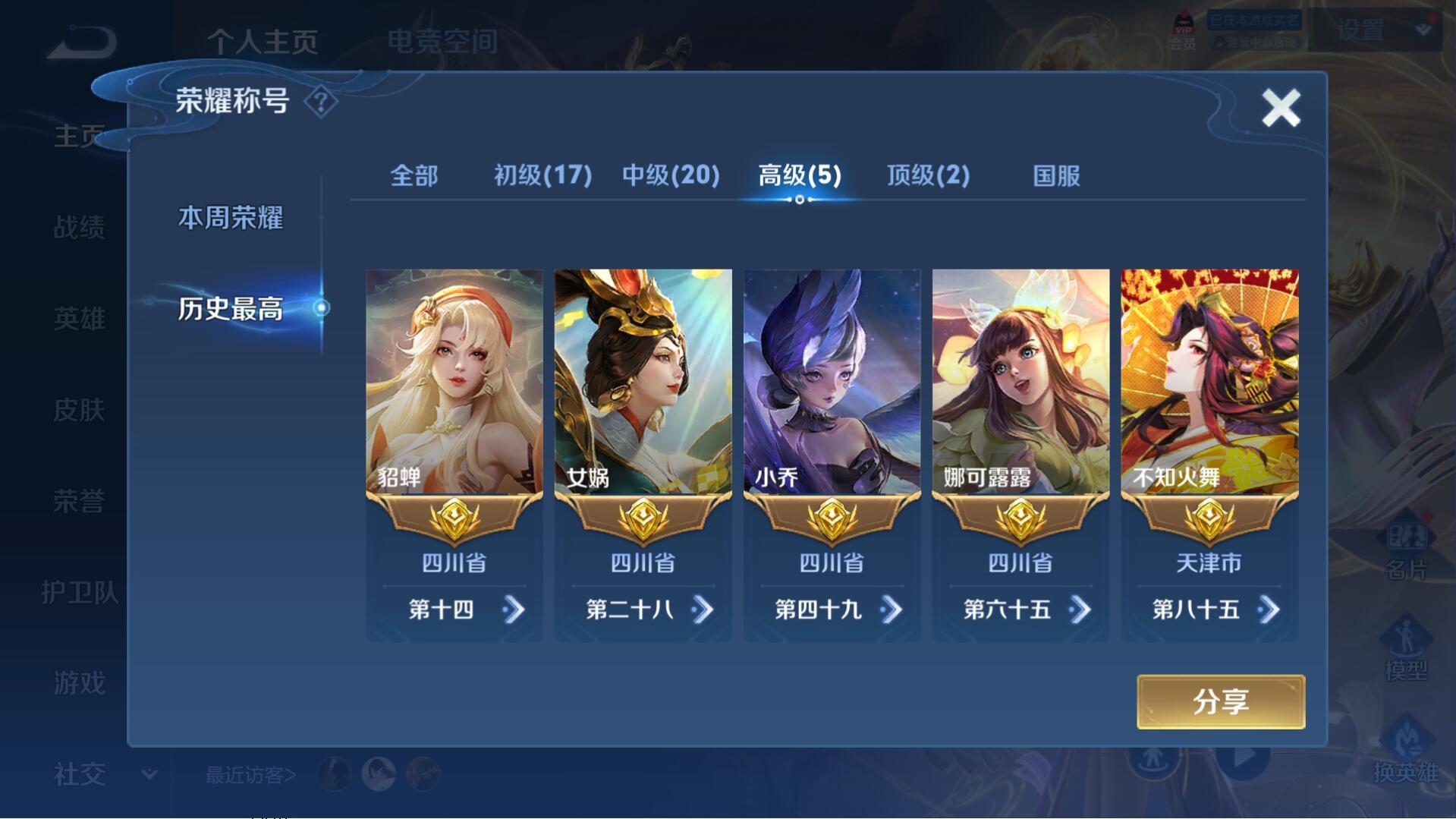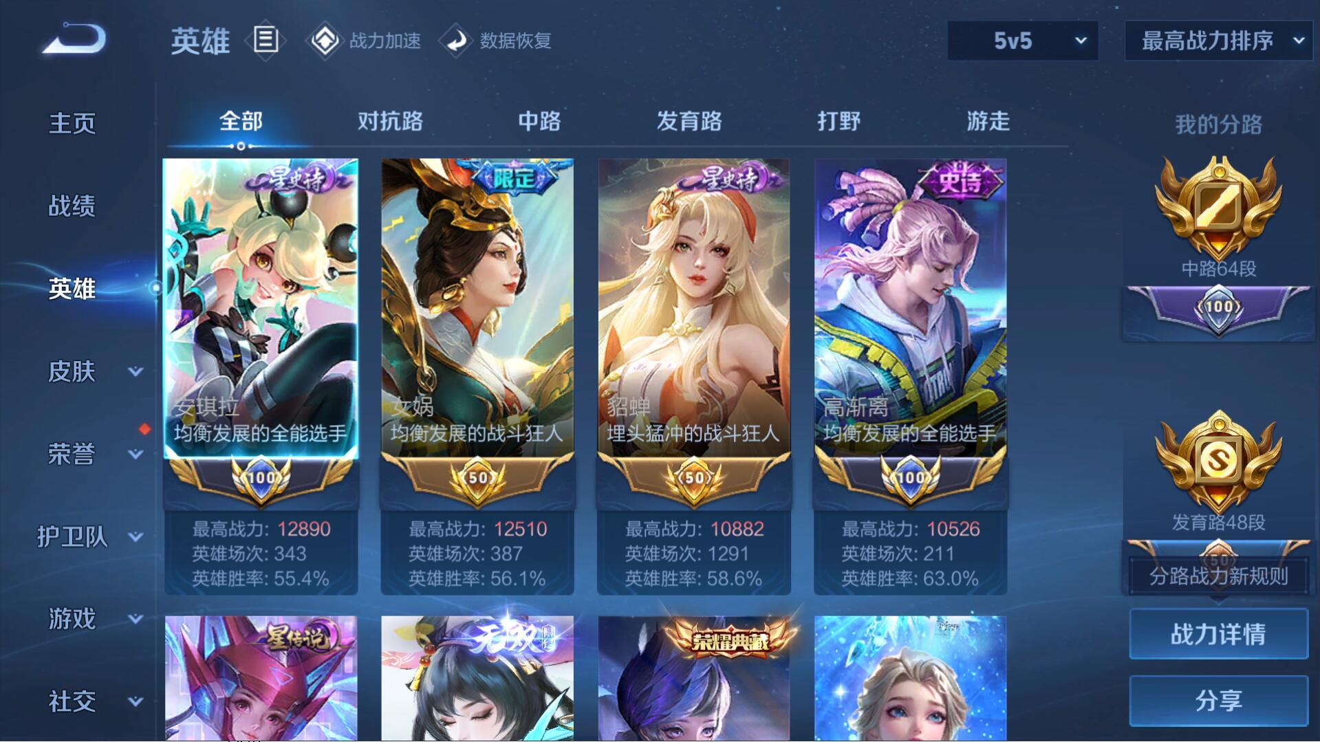 PX_1993840-可二次,无双v10,贵族积分52.2w,传说天幕(无尽之约,灿若星河,挚爱童话,花朝如约,金虎啸春,秋月华灯)630皮肤,13典藏,9无双,2珍品传说,113传说,5星传说(苍灵仙君,未来机甲,时之愿境,幽冥之眼,金色仲夏夜)64段中路,48段发育,2历史小国(高渐离,安琪拉)5历史金标(万战女娲,万战貂蝉,小乔,娜可露露,不知火舞)武则天,器灵·螭龙剑,离恨烟,花合斗,瑶-真我赫