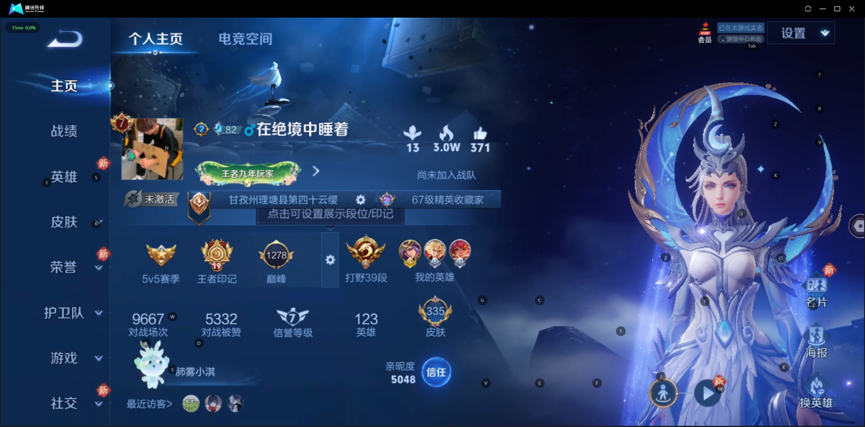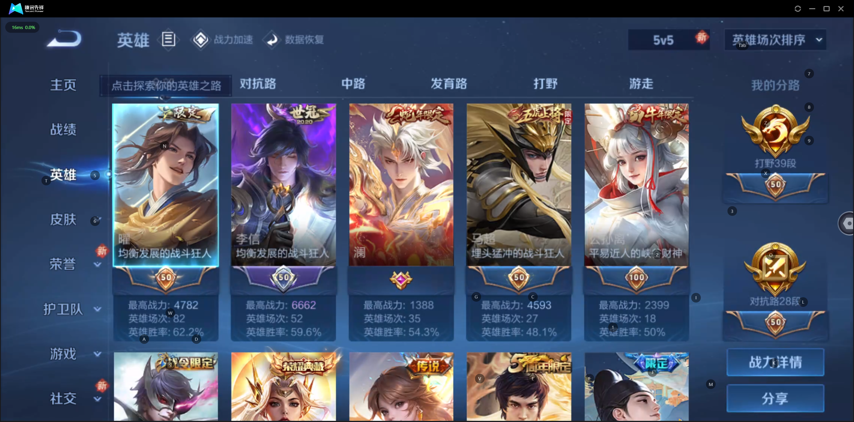W10022【安卓区V8】可二次实名,英雄104,皮肤161,典藏:李白鸣剑.曳
