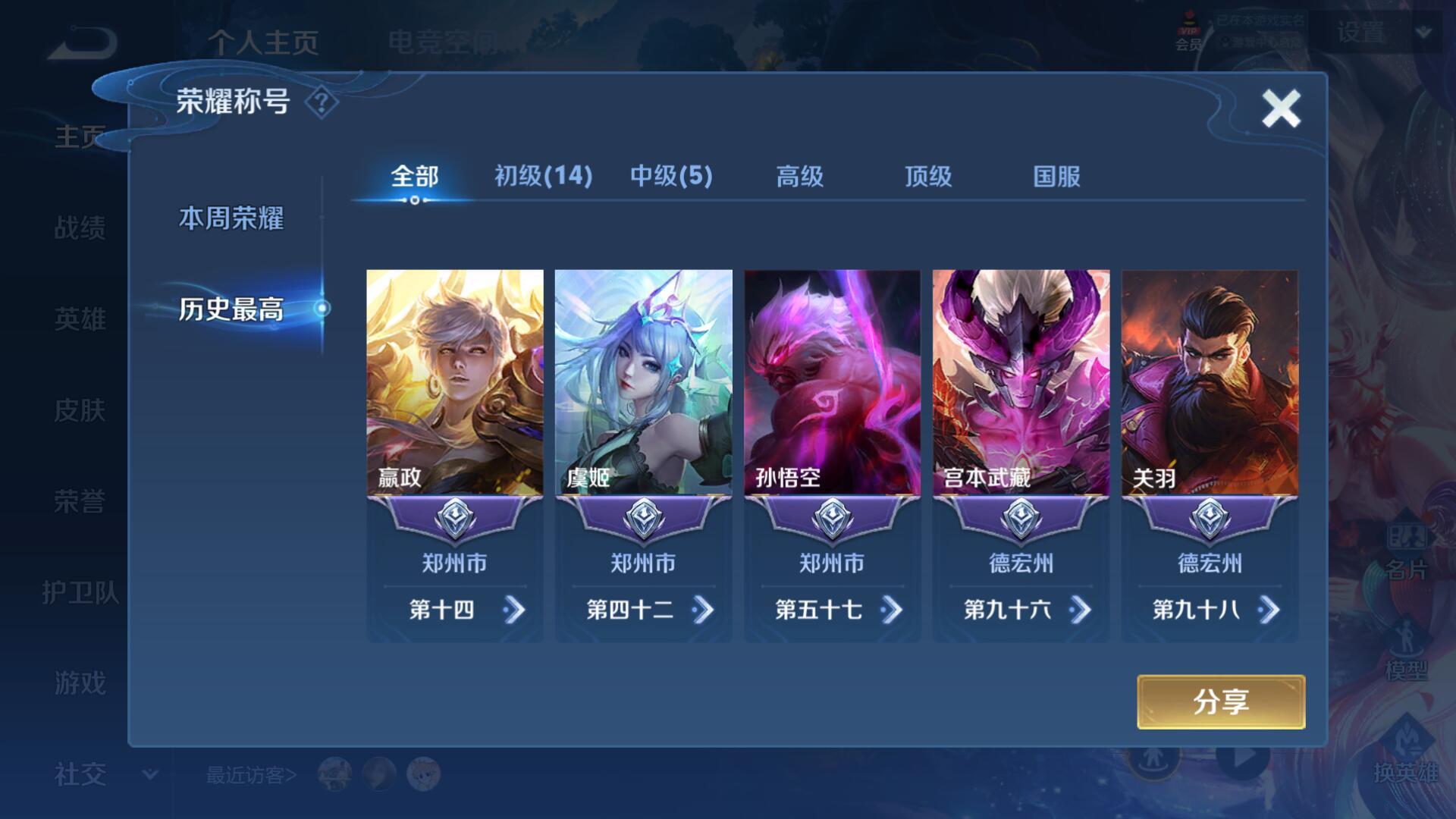 W10005,【安卓QQ】,V8,英雄84,皮肤93,典藏:全息碎影,凤求凰,(