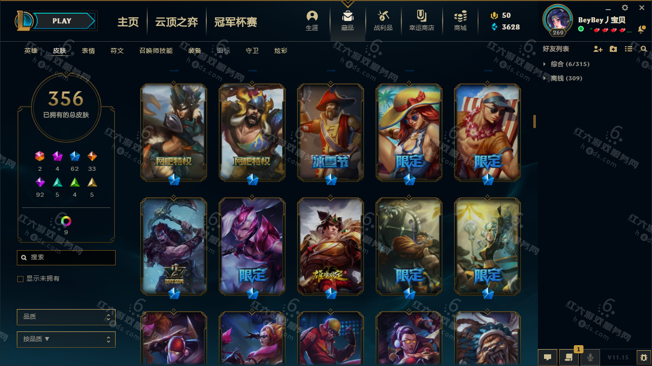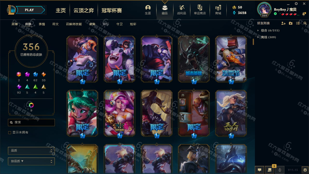 黑色玫瑰 155英雄356皮肤9炫彩/白银2/至臻亚索/海克斯鳄鱼/DJ娑娜/灵魂守卫乌迪尔/3周年女枪/冠军劫/冠军瑞文/冠军龙女/冰雪节璐璐/死亡契约劫/马年限定瑞文/勇者豹女/2周年诺克/鸡年盖伦/泳池派对女枪/TGC限定提莫/冰雪节提莫/冰雪节猪妹/钢铁军团盖伦/黑夜使者亚索/源计划寒冰/源计划剑圣/详情看图/★童童★低价出售找回包赔