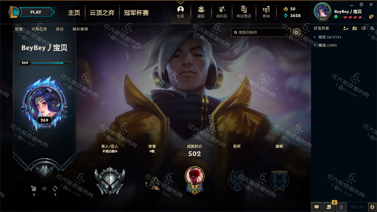 Y10022,电信,守望之海,456级,单排铂金4,155个英雄,351个精品皮