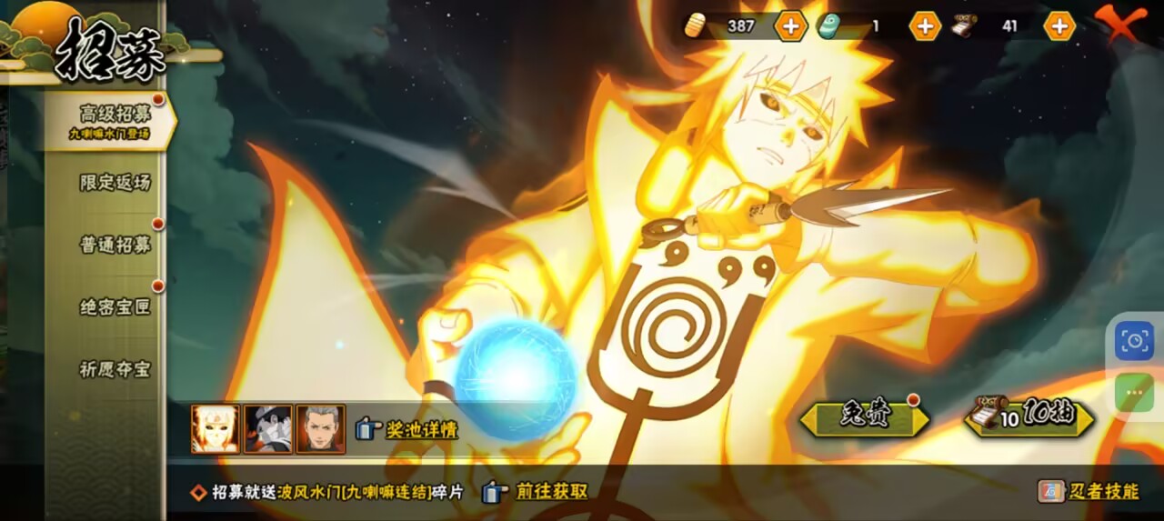 【S忍者】,宇智波带土「忍界大战」,自来也「舞之豪杰」,漩涡鸣人「暴怒·第六尾」,宇智波斑「秽土转生」,波风水门「秽土转生」,猿飞日斩「秽土转生」,长门「秽土转生」,宇智波鼬「须佐能乎」,波风水门,大蛇丸,