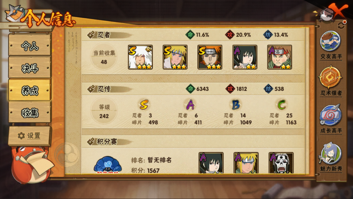 PX_1967129-实名:,可修改,贵族等级:,V1,S忍数:,3,A忍数:,6,战力值(万):,2513296,S级忍者:,佩恩「天道」,波风水门,自来也,「舞之豪杰」,通灵兽:,忍犬,忍龟,蛤蟆吉,蓝蛇,猿魔,镰鼬,山椒鱼,蜃,砂之守鹤