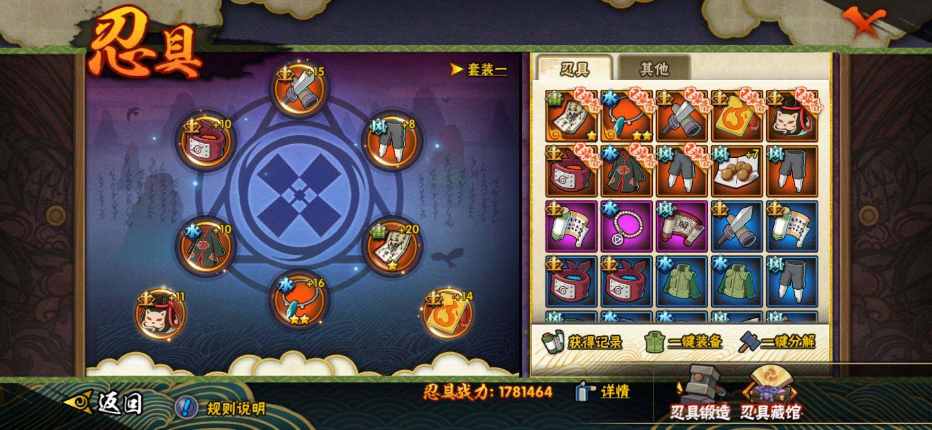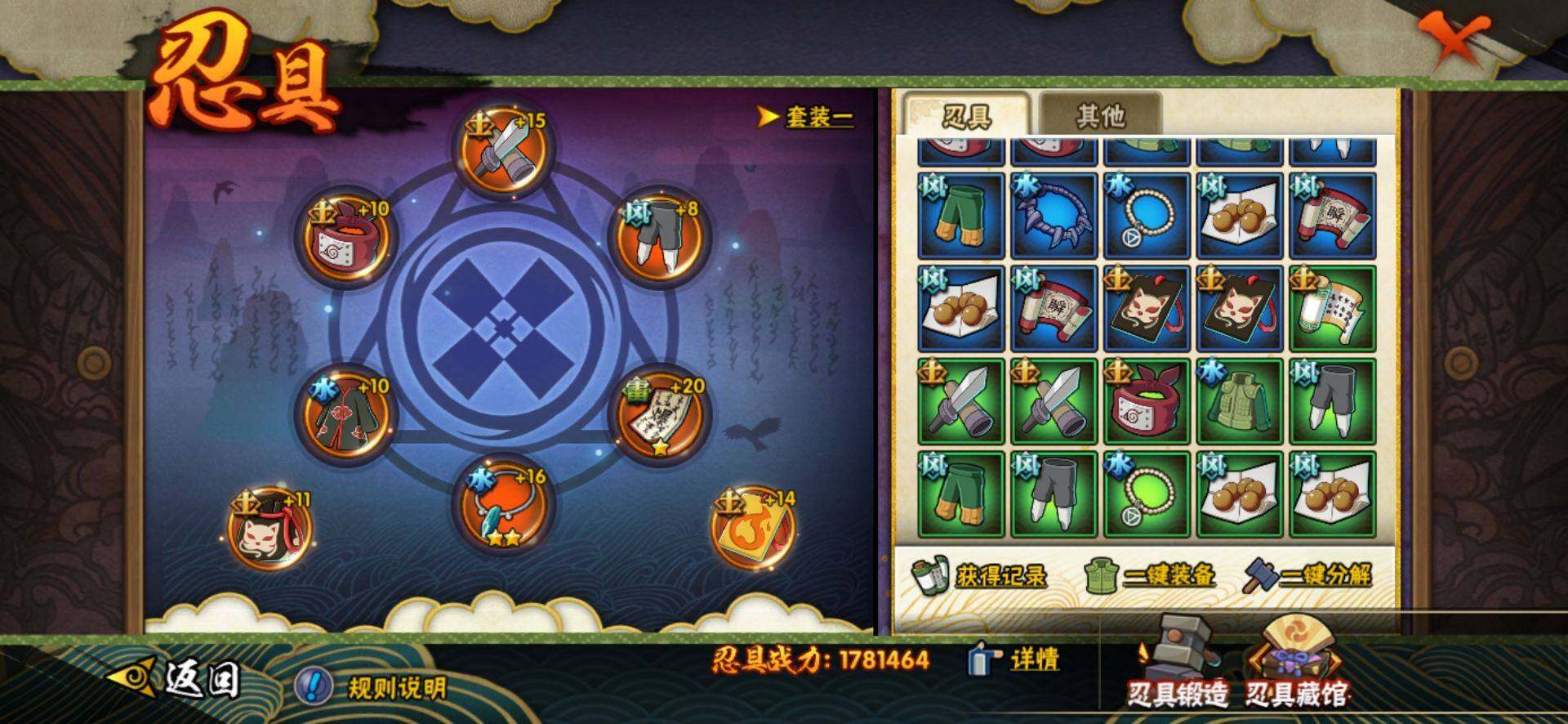 【A级忍者】:艾「青年」(2星),长门「青年」(2星),波风水门「青年」(2星),迪达拉(2星),迪达拉「秽土转生」(2星),飞段(2星),飞段「死司凭血」(2星),干柿鬼鲛(3星),漩涡鸣人「九尾查克拉」(2星),迈特凯(3星),我爱罗「疾风传」(3星),蝎(3星),角都「秽土转生」(2星),猿飞阿斯玛(3星),宇智波佐助「须佐能乎」(2星),日向宁次「忍界大战」(2星),日向雏田「最终章」(2星),长十郎「六代目水影」(2星),猿飞木叶丸「博人传」(2星),黑土「博人传」(2星),秋道丁次「忍界大战」(2星),千代「近松十人卫」(2星),宇智波泉奈(2星)