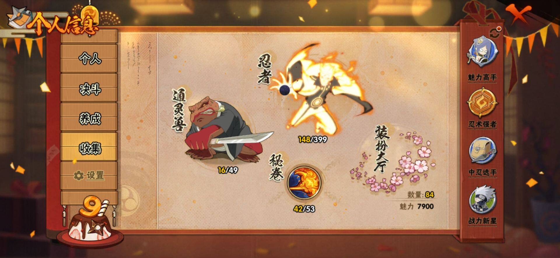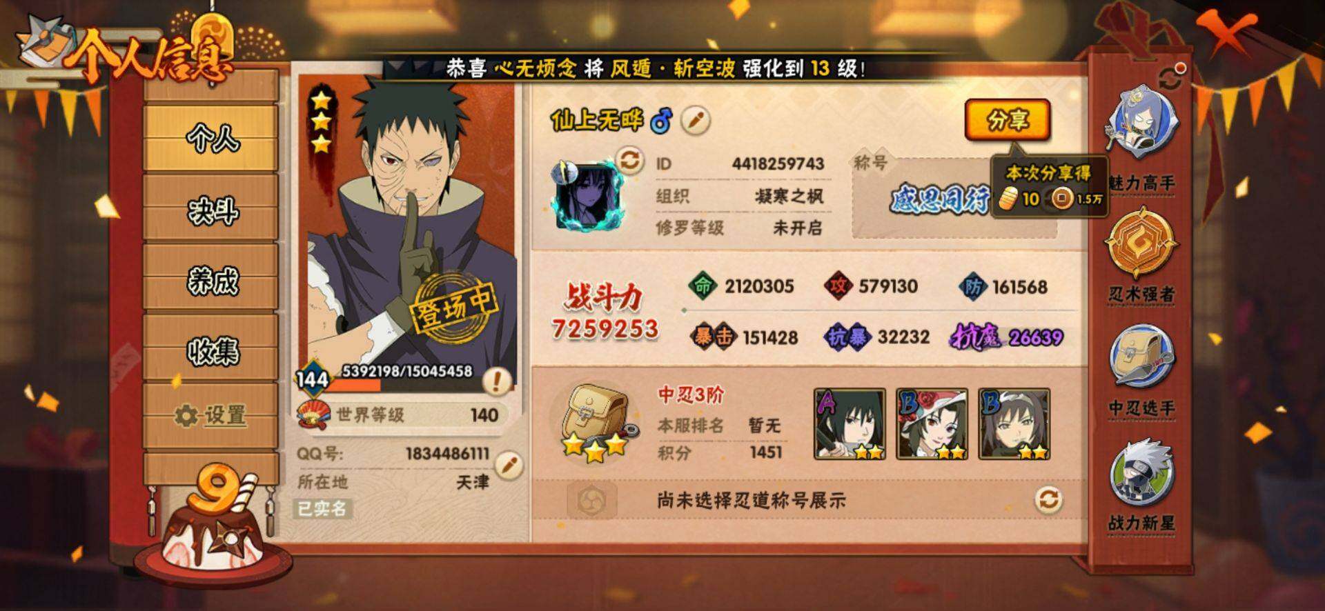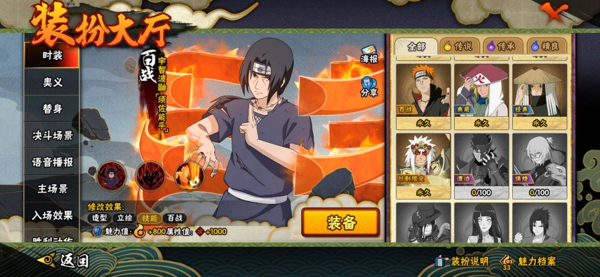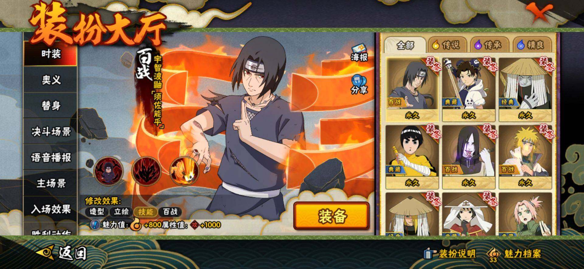 【S级忍者】:春野樱「忍界大战」(3星),宇智波带土「忍界大战」(3星),宇智波鼬「须佐能乎」(3星),自来也「舞之豪杰」(3星),大蛇丸(3星),波风水门(3星),药师兜「仙人模式」(3星),漩涡鸣人「九喇嘛连结」(3星),佩恩「天道」(3星),宇智波佐助「永恒万花筒」(3星),宇智波斑,「白面具」(3星宇智波斑「白面具」)