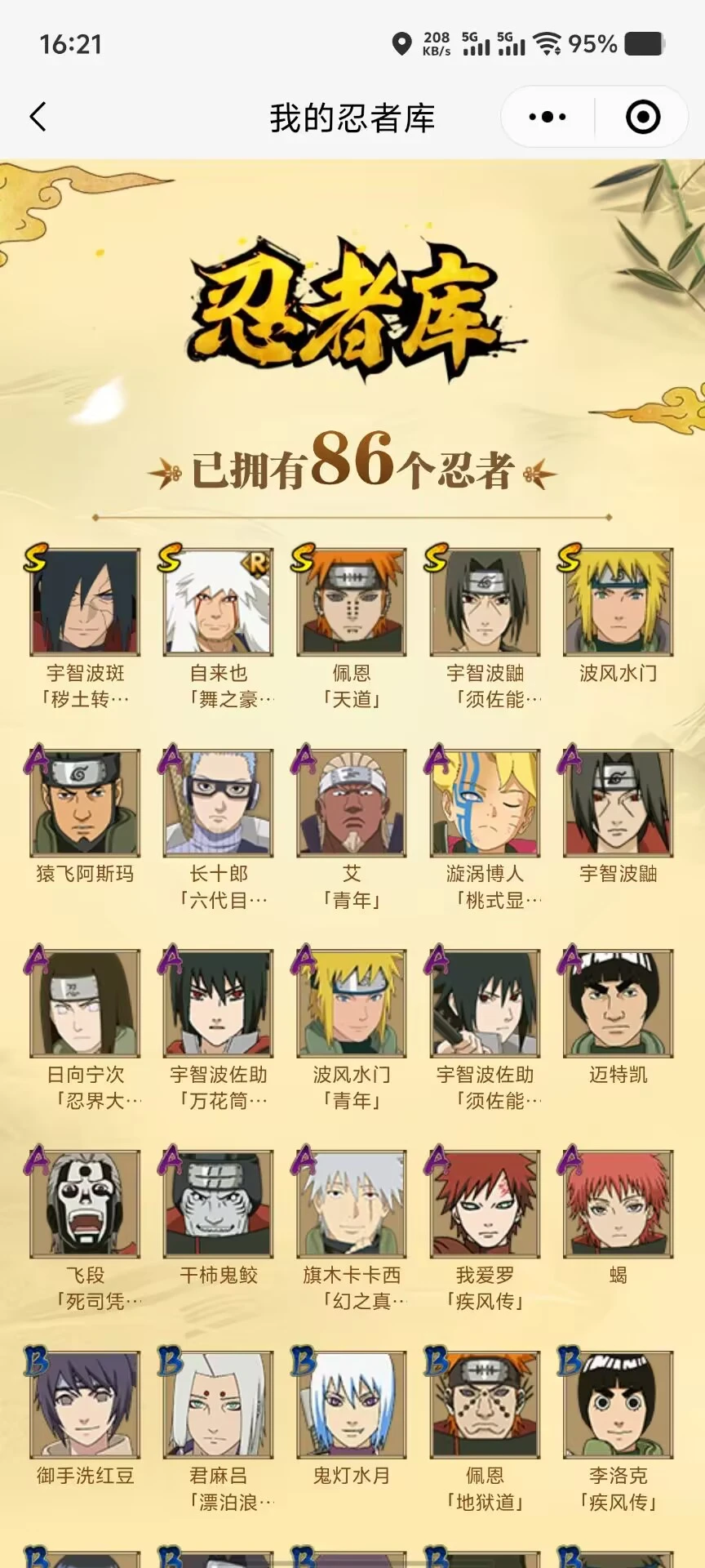 【S忍者】,宇智波斑「秽土转生·解」,自来也「舞之豪杰」,宇智波鼬「须佐能乎」,佩恩「天道」,波风水门,