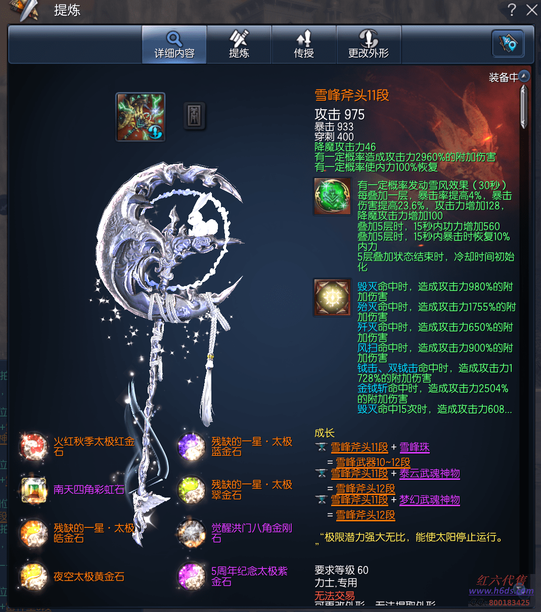 J15399,无日峰力士,侠义团67段,天罚真气石11段,雪峰元气石8段,狂天斧