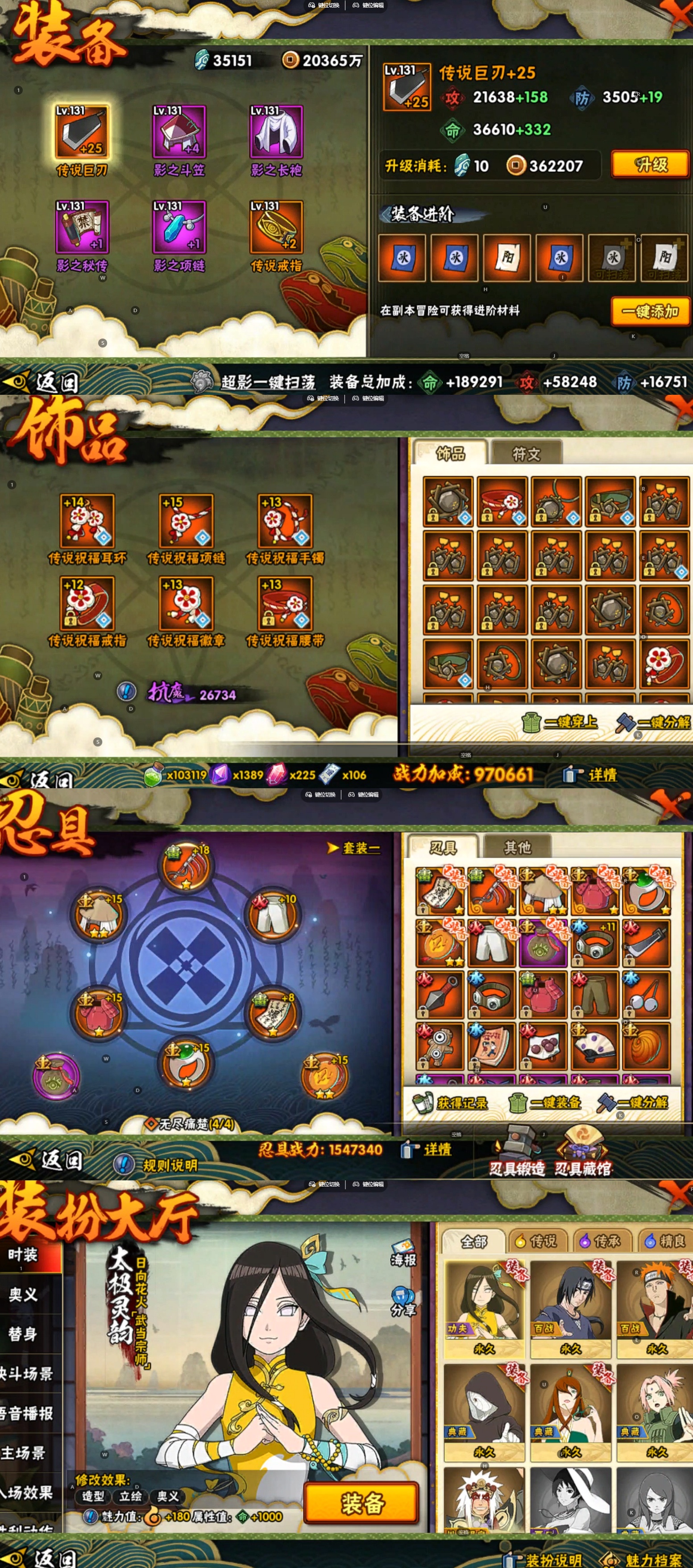 【A忍者】,不动,蝎「绯流琥」,宇智波泉奈,神农「羁绊」,桃地再不斩「秽土转生」,角都「秽土转生」,宇智波佐助「须佐能乎」,桃地再不斩「漂泊武士」,小南「新春限定」,宇智波带土「暴怒」,照美冥「夏日泳装」,宇智波鼬「新春限定」,小南「夏日泳装」,飞段,迪达拉,蝎,干柿鬼鲛,宇智波鼬,猿飞阿斯玛,迈特凯,桃地再不斩,