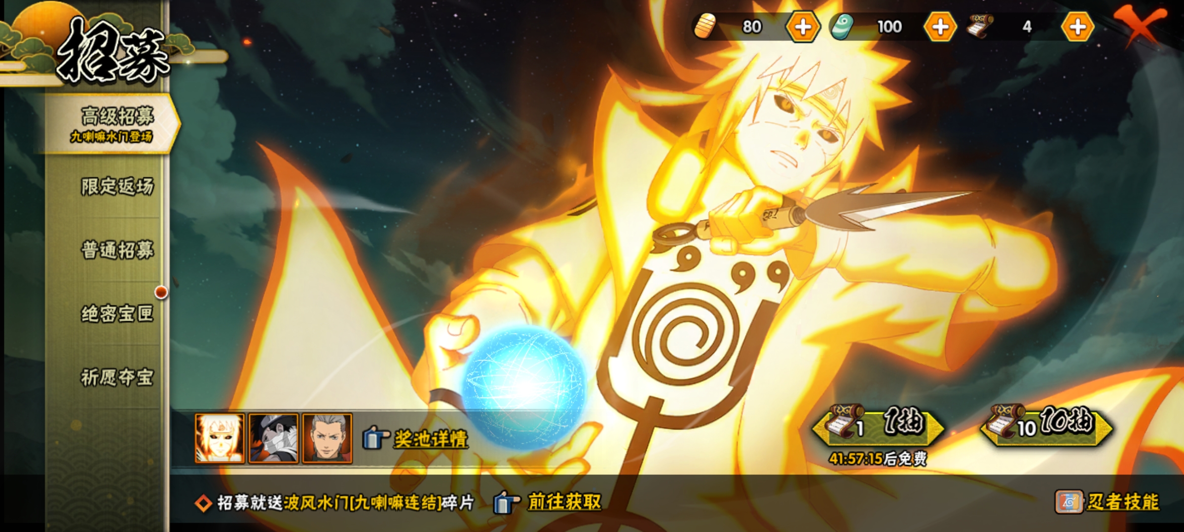 【S忍者】,迈特凯「死门」,自来也「舞之豪杰」,大筒木舍人「最终章」,漩涡鸣人「暴怒·第六尾」,宇智波鼬「须佐能乎」,佩恩「天道」,波风水门,大蛇丸,