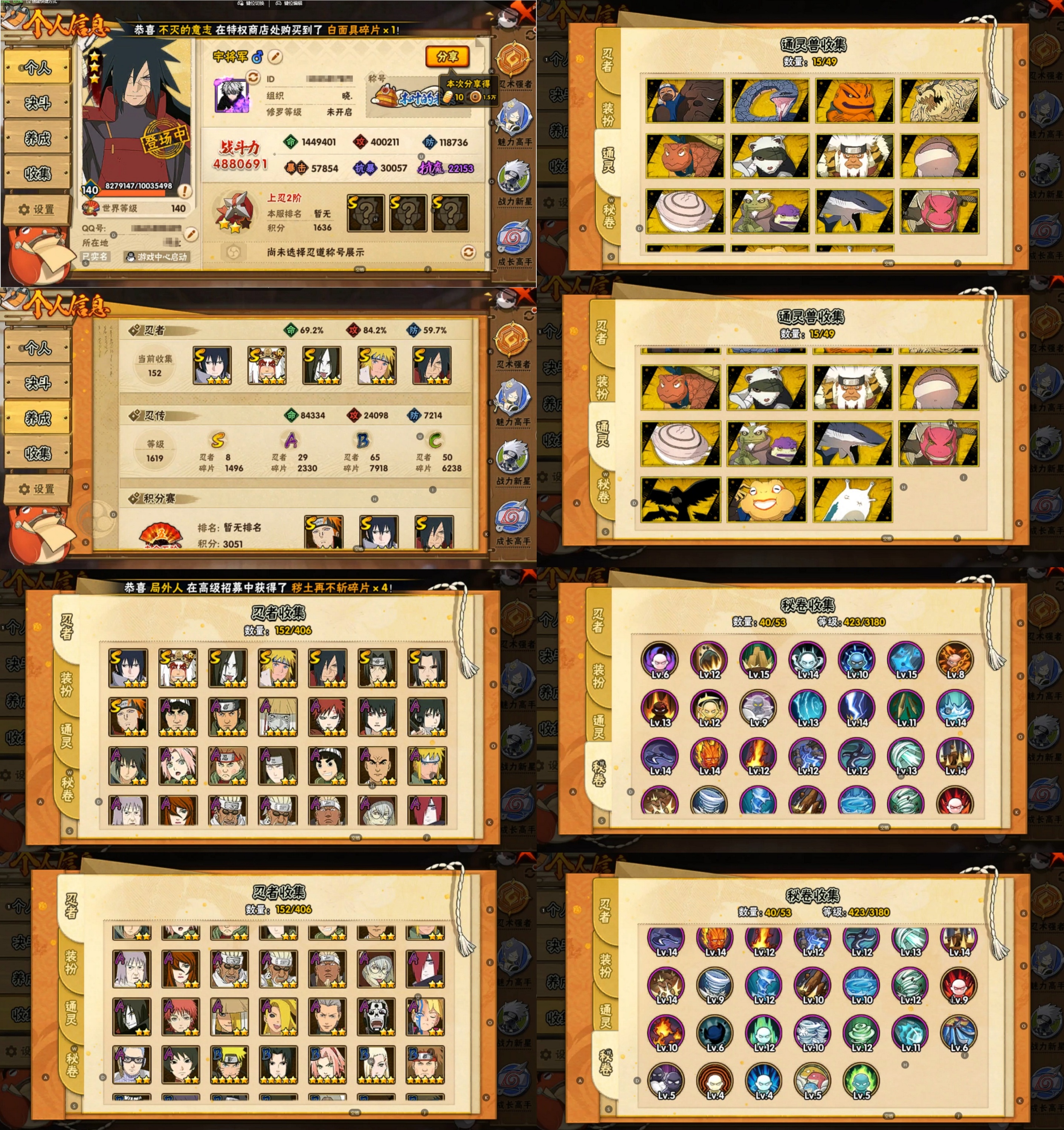 【S忍者】,宇智波斑「秽土转生·解」,宇智波佐助「永恒万花筒」,自来也「舞之豪杰」,宇智波鼬「秽土转生」,宇智波鼬「须佐能乎」,佩恩「天道」,波风水门,大蛇丸,