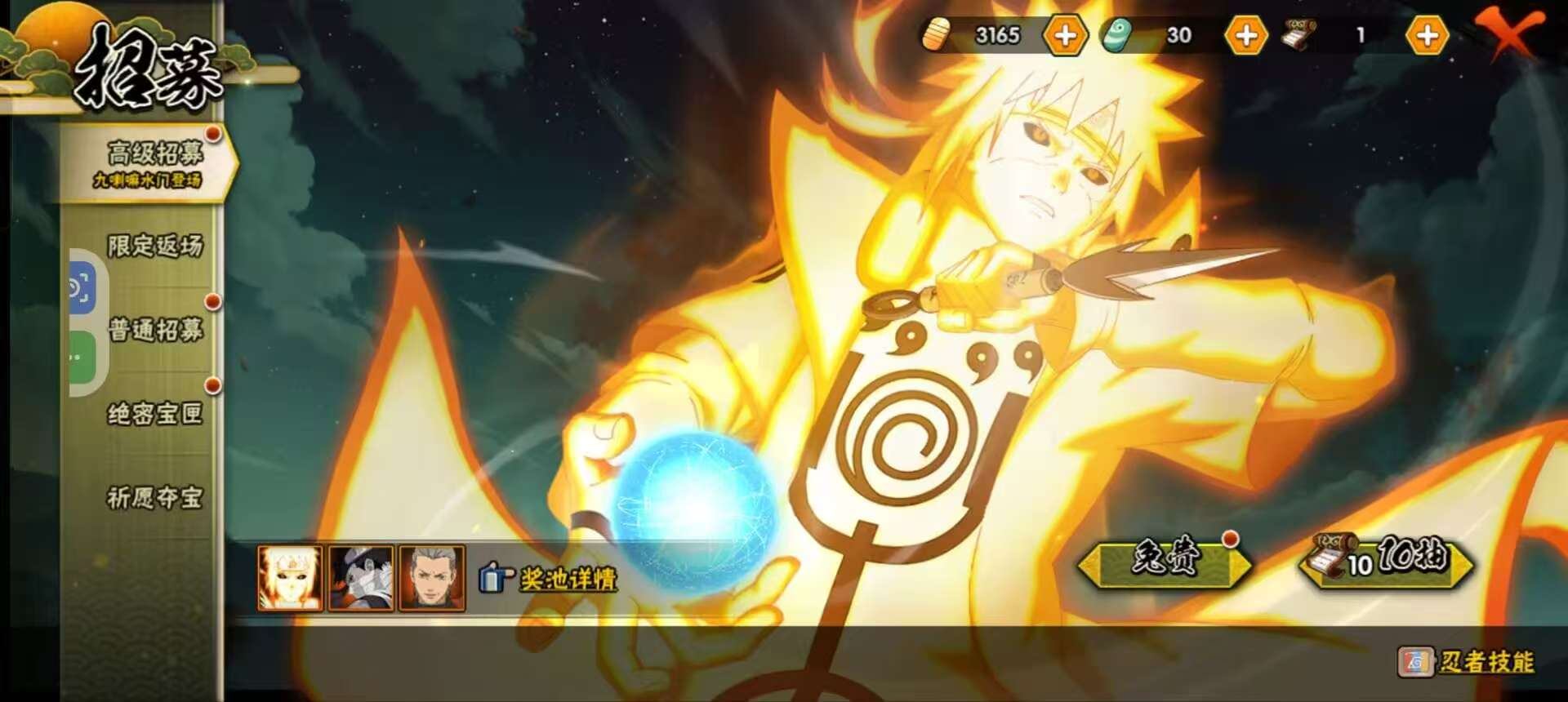 【S忍者】,宇智波斑「秽土转生·解」,漩涡鸣人「九喇嘛连结」,迈特凯「死门」,宇智波带土「忍界大战」,自来也「舞之豪杰」,旗木卡卡西「须佐能乎」,自来也「传说中的三忍」,宇智波鼬「须佐能乎」,佩恩「天道」,波风水门,大蛇丸,