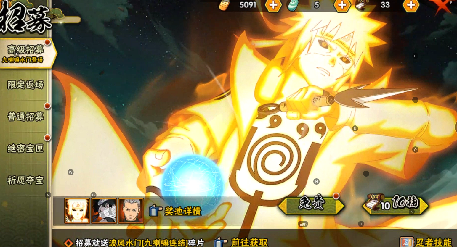 【S忍者】,宇智波止水「须佐能乎」,艾「忍界大战」,宇智波斑「秽土转生·解」,宇智波佐助「永恒万花筒」,自来也「舞之豪杰」,旗木卡卡西「须佐能乎」,漩涡鸣人「暴怒·第六尾」,宇智波斑「白面具」,宇智波鼬「须佐能乎」,佩恩「天道」,波风水门,