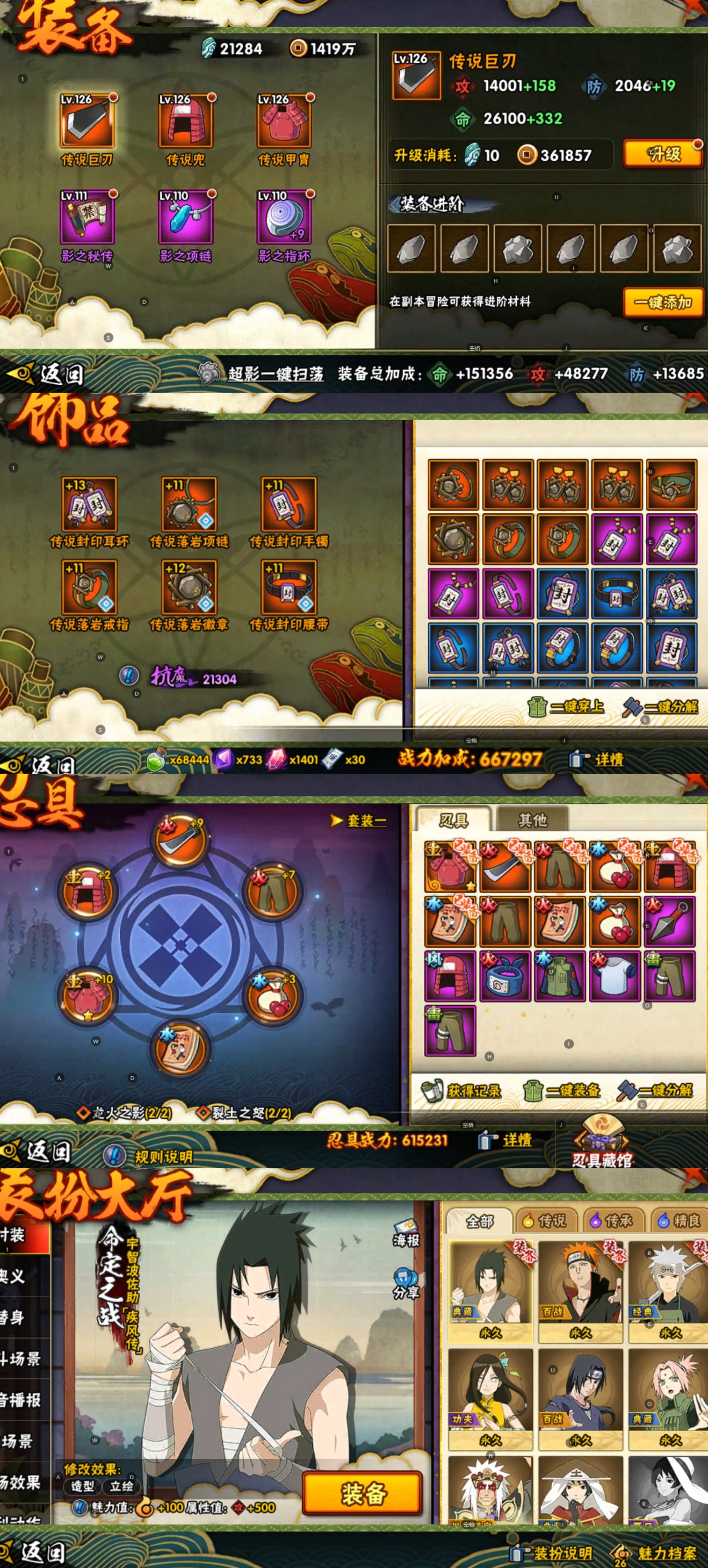 【A忍者】,旗木卡卡西「幻之真容」,李洛克「忍界大战」,蝎「绯流琥」,宇智波泉奈,宇智波带土「漂泊浪客」,神农「羁绊」,角都「秽土转生」,艾「青年」,波风水门「青年」,宇智波佐助「须佐能乎」,千代「近松十人卫」,飞段「死司凭血」,飞段,迪达拉,蝎,干柿鬼鲛,宇智波鼬,猿飞阿斯玛,迈特凯,