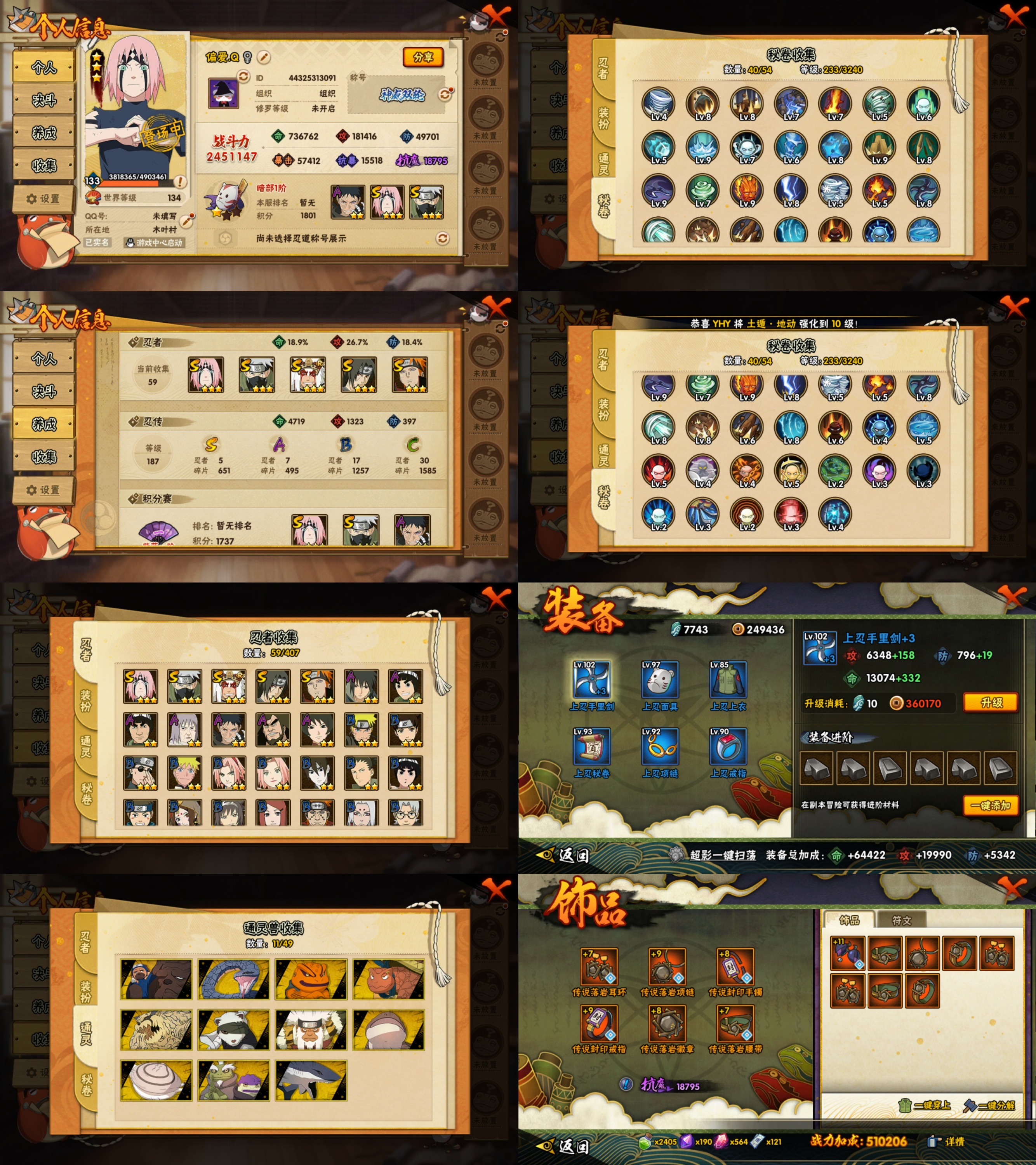 PX_2180664-5S忍/7A忍/战力245W/V7/区服3253 【S忍者】,春野樱「忍界大战」,自来也「舞之豪杰」,旗木卡卡西「须佐能乎」,宇智波鼬「须佐能乎」,佩恩「天道」, 【A忍者】,李洛克「忍界大战」,宇智波泉奈,宇智波带土「漂泊浪客」,神农「羁绊」,千代「近松十人卫」,迈特凯,