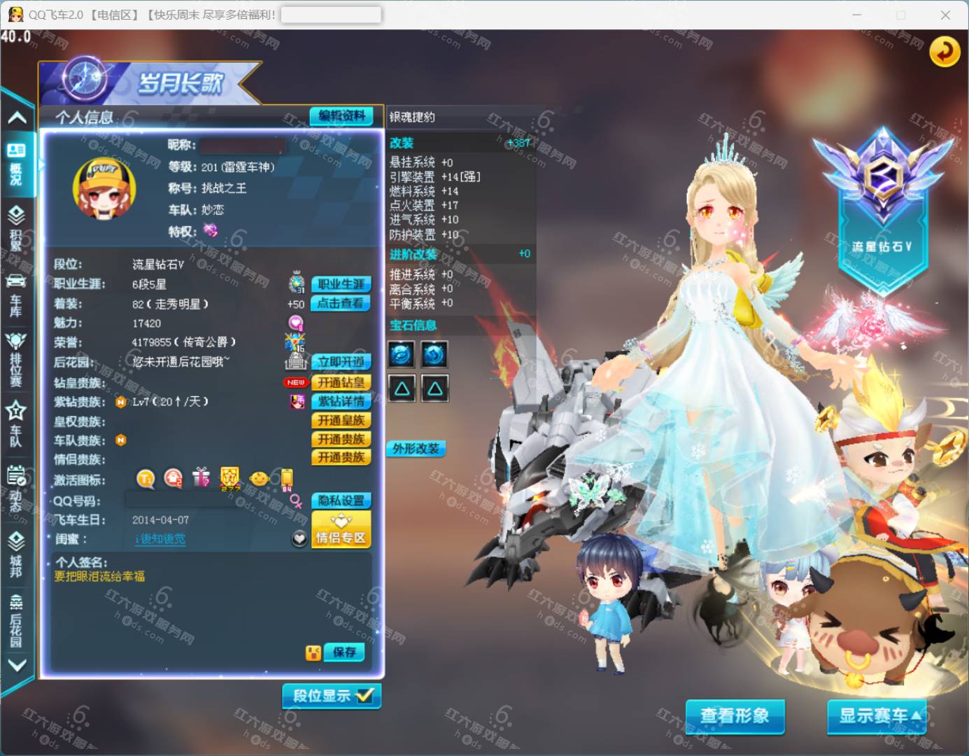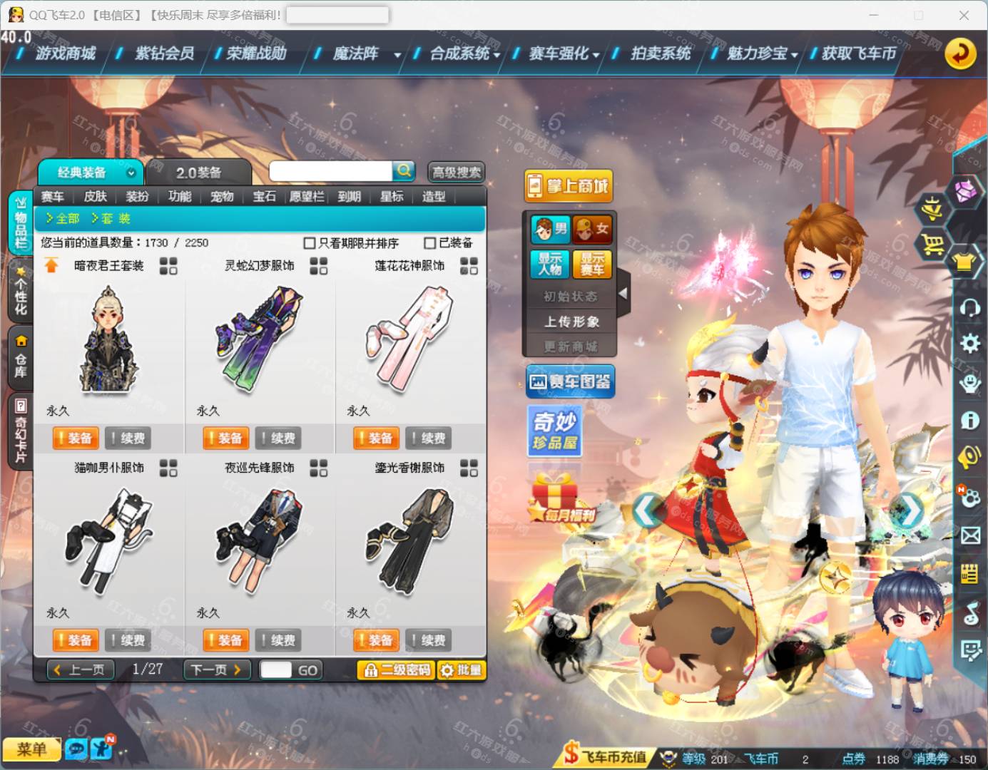 X932/ 电信 紫7 3ST 10A 29爆天甲奥丁/29地狱火/电玩雷诺/夜之幽兰/小吕布+10 S车:全29爆天甲 奥丁双4/全29地狱火 重4满3 T1:银魂捷豹(14 14 17 10)双3 A车:电玩雷诺(29 29 29 26)满3 / 雷诺(25 29 29 26)满3 / 时空之翼(17 19 21 16)双3 / 超时空穿梭者(17 18 21 17)满3 / 星辰之语(20 15 10 10)单3/穿梭者(11 14 19 10)双3/ 十周年鎏金赛车/春日部之影/缘梦帝王/春影龙翱/飞跃雷克 赛车皮肤:爆天甲-奥丁/雷诺-幻夜V2 装扮男衣柜27页:夜之幽兰悬浮 装扮女衣柜41页: 坐骑:8个 宠物:小吕布+10/神笔牛牛+8/白金神兽+6 紫钻到期期限:2026-3