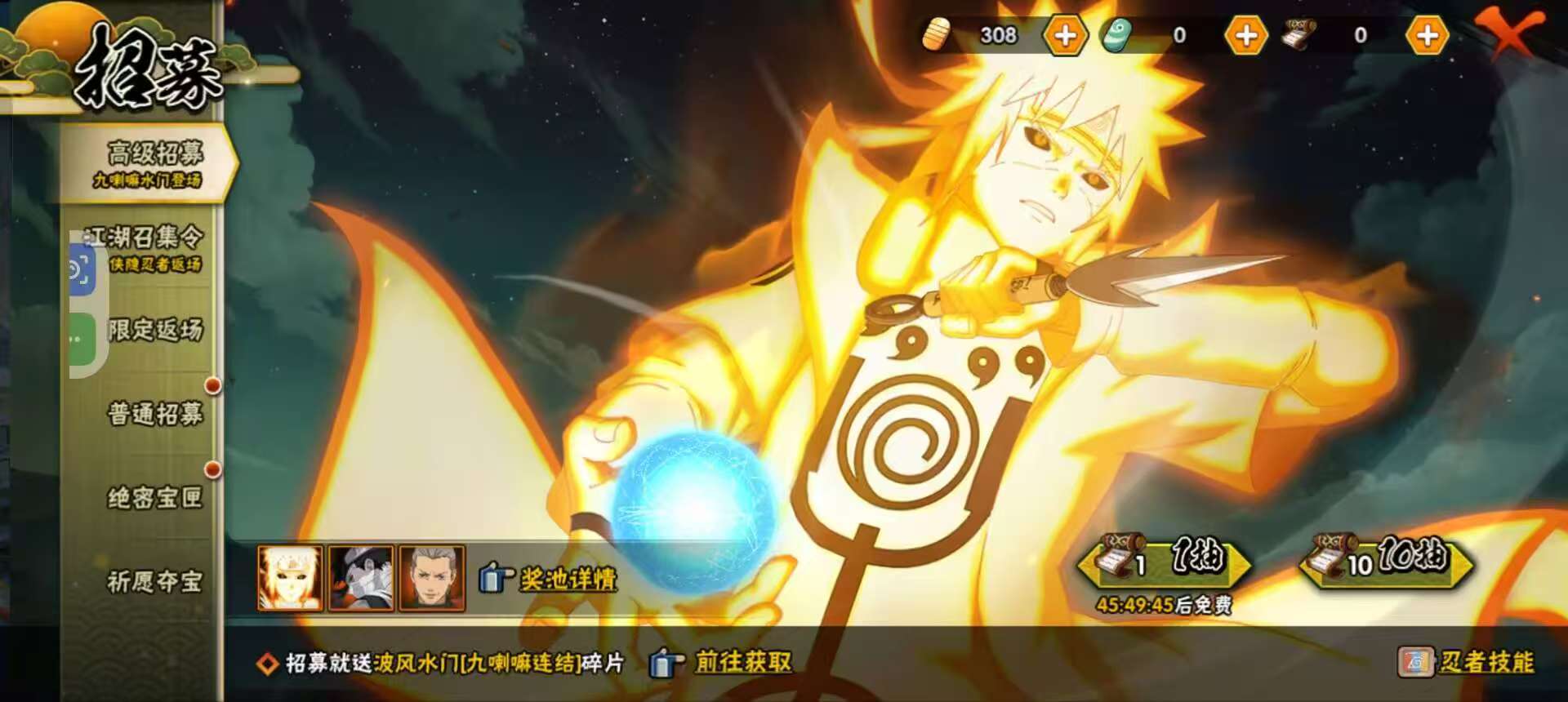 【S忍者】,宇智波止水「须佐能乎」,宇智波斑「秽土转生·解」,漩涡鸣人「九喇嘛连结」,千手柱间「秽土转生」,自来也「舞之豪杰」,旗木卡卡西「须佐能乎」,自来也「传说中的三忍」,宇智波鼬「须佐能乎」,佩恩「天道」,波风水门,