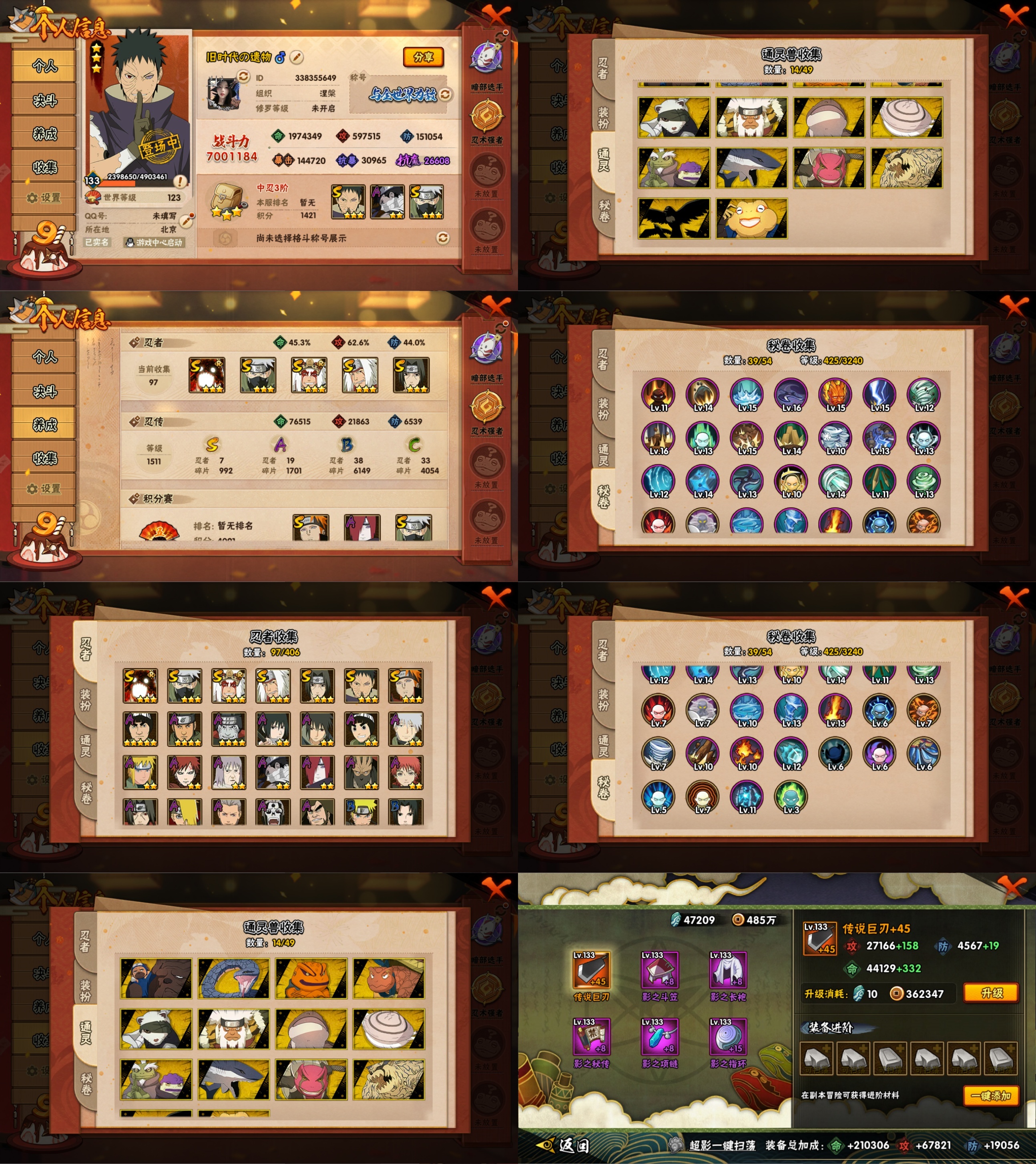 【S忍者】,宇智波带土「忍界大战」,自来也「舞之豪杰」,旗木卡卡西「须佐能乎」,自来也「传说中的三忍」,漩涡鸣人「暴怒·第六尾」,宇智波鼬「须佐能乎」,佩恩「天道」,