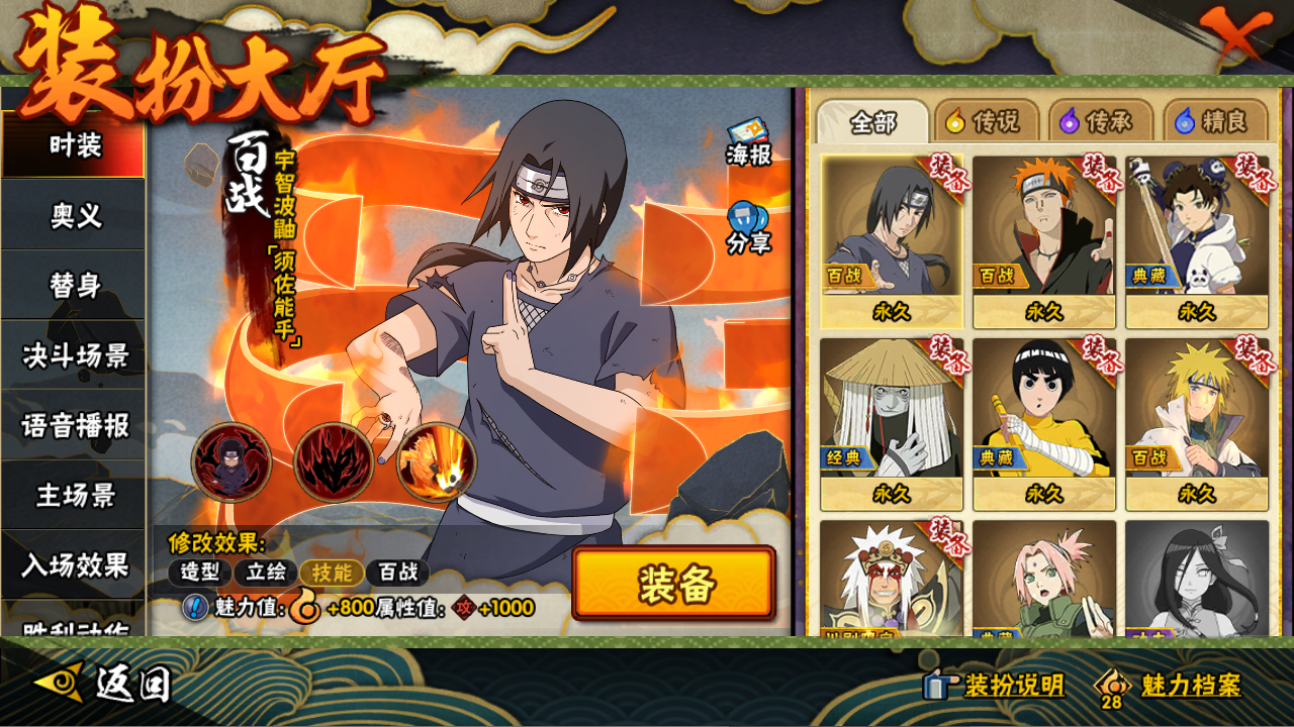 【A忍者】,李洛克「忍界大战」,蝎「绯流琥」,宇智波泉奈,宇智波佐助「须佐能乎」,秋道丁次「忍界大战」,旗木卡卡西「万花筒写轮眼」,飞段「死司凭血」,我爱罗「疾风传」,蝎,干柿鬼鲛,猿飞阿斯玛,迈特凯,