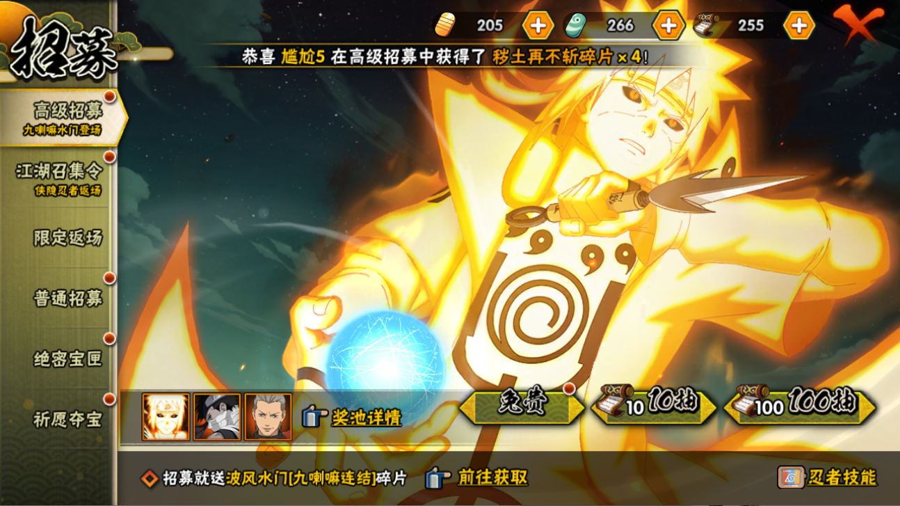 【S忍者】,宇智波斑「秽土转生·解」,宇智波佐助「永恒万花筒」,漩涡鸣人「九喇嘛连结」,宇智波斑「木叶创立」,自来也「舞之豪杰」,佩恩「天道」,波风水门,大蛇丸,
