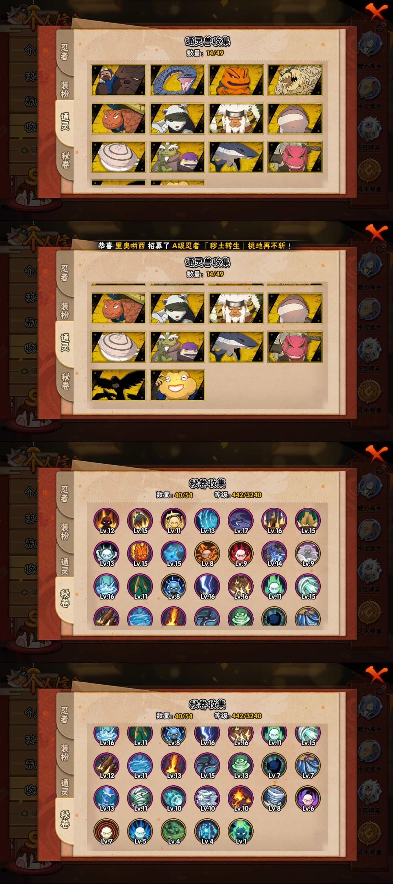 【A忍者】,长十郎「六代目水影」,不缘,漩涡博人「桃式显现」,李洛克「忍界大战」,蝎「绯流琥」,宇智波泉奈,神农「羁绊」,桃地再不斩「秽土转生」,长门「青年」,达鲁伊「五代目雷影」,宇智波佐助「须佐能乎」,漩涡鸣人「九尾查克拉」,千代「近松十人卫」,秋道丁次「忍界大战」,大蛇丸「晓」,飞段「死司凭血」,飞段,迪达拉,我爱罗「疾风传」,蝎,干柿鬼鲛,宇智波鼬,猿飞阿斯玛,迈特凯,
