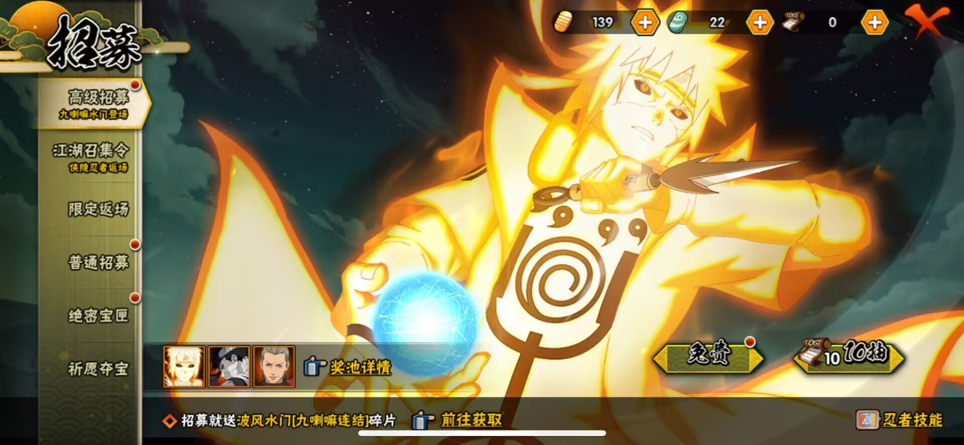 【S忍者】,宇智波止水「须佐能乎」,宇智波斑「秽土转生·解」,宇智波佐助「永恒万花筒」,神秘面具男「红夜之刃」,春野樱「忍界大战」,漩涡鸣人「九喇嘛连结」,宇智波带土「忍界大战」,自来也「舞之豪杰」,药师兜「仙人模式」,佩恩「天道」,波风水门,大蛇丸,