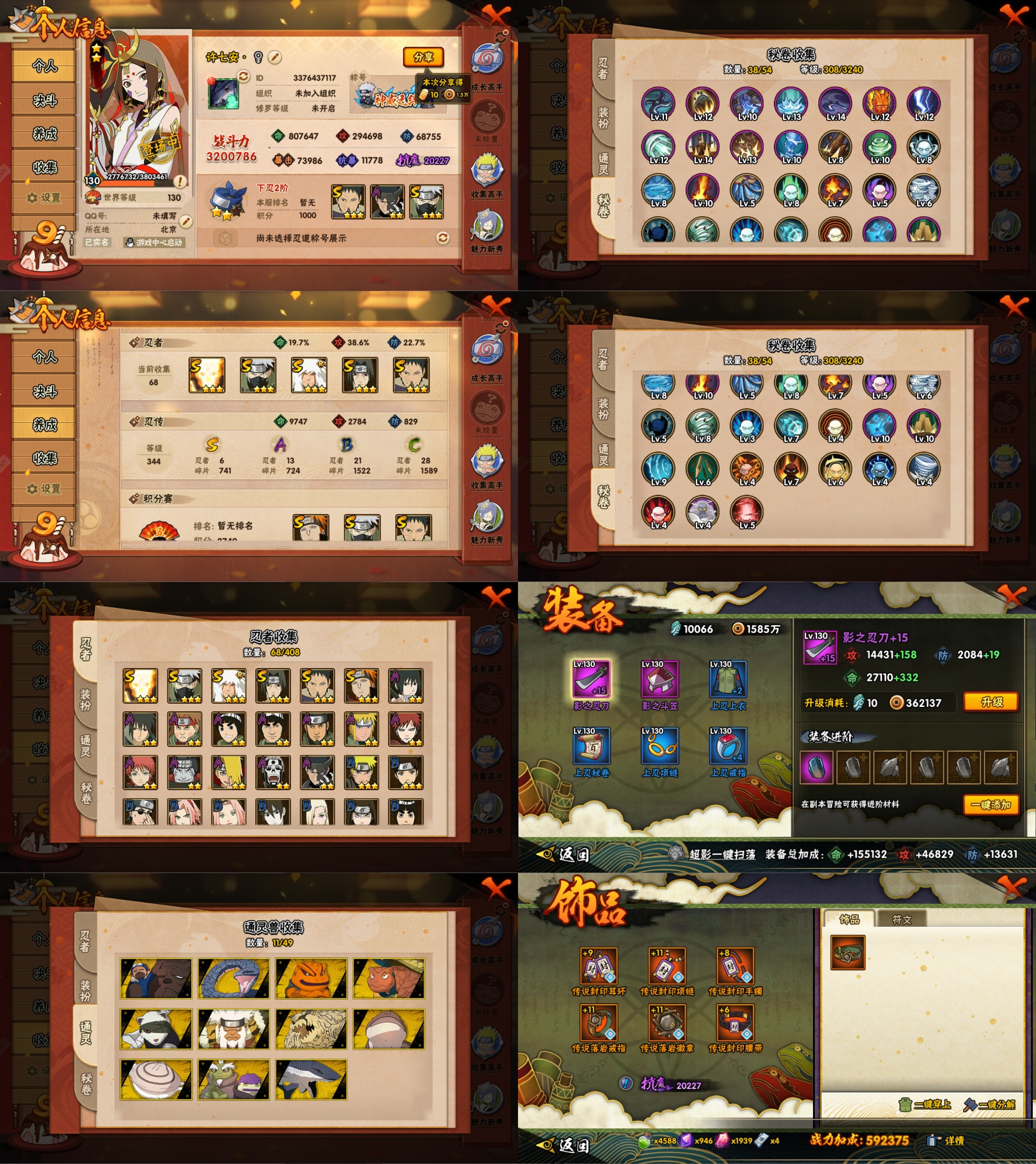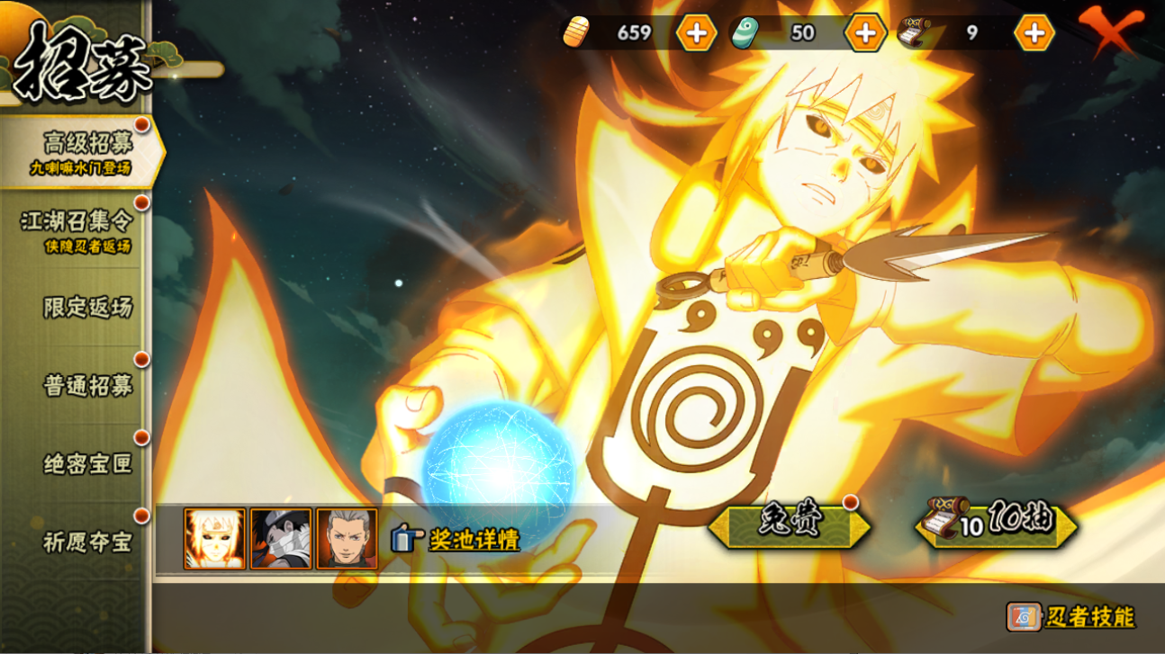 【S忍者】,漩涡鸣人「九喇嘛连结」,宇智波带土「忍界大战」,自来也「舞之豪杰」,旗木卡卡西「须佐能乎」,宇智波鼬「须佐能乎」,佩恩「天道」,