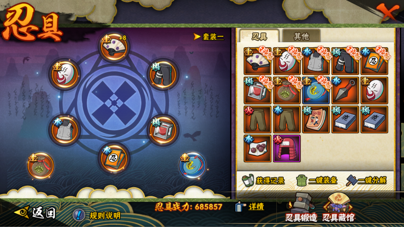 【A忍者】,日向宁次「忍界大战」,宇智波泉奈,宇智波带土「漂泊浪客」,神农「羁绊」,神秘面具男「忍者之路」,波风水门「青年」,宇智波佐助「须佐能乎」,千代「近松十人卫」,飞段「死司凭血」,我爱罗「疾风传」,蝎,干柿鬼鲛,宇智波鼬,猿飞阿斯玛,迈特凯,桃地再不斩,