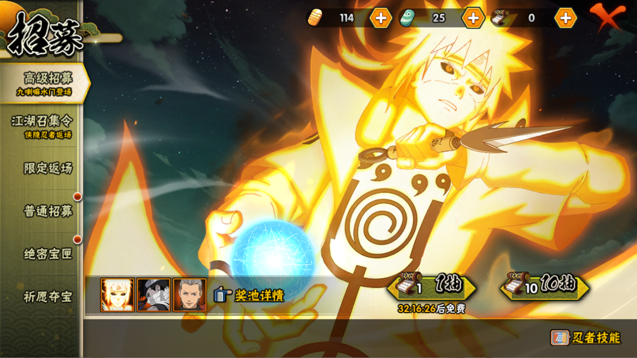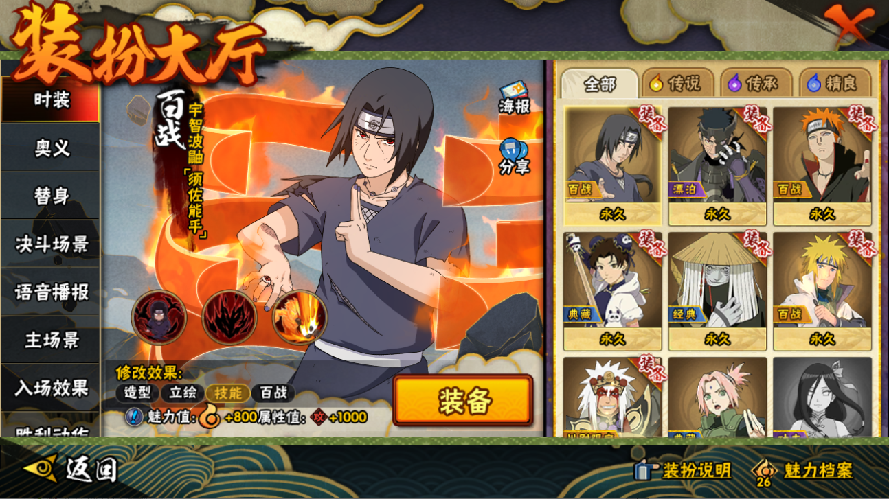 【S忍者】,宇智波佐助「永恒万花筒」,自来也「舞之豪杰」,宇智波鼬「须佐能乎」,佩恩「天道」,波风水门,