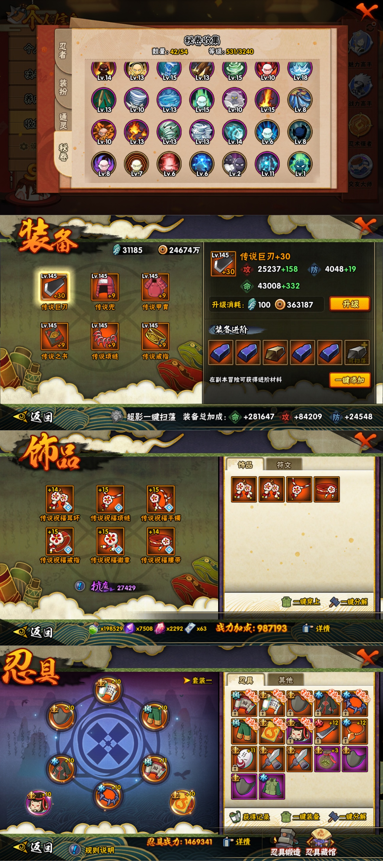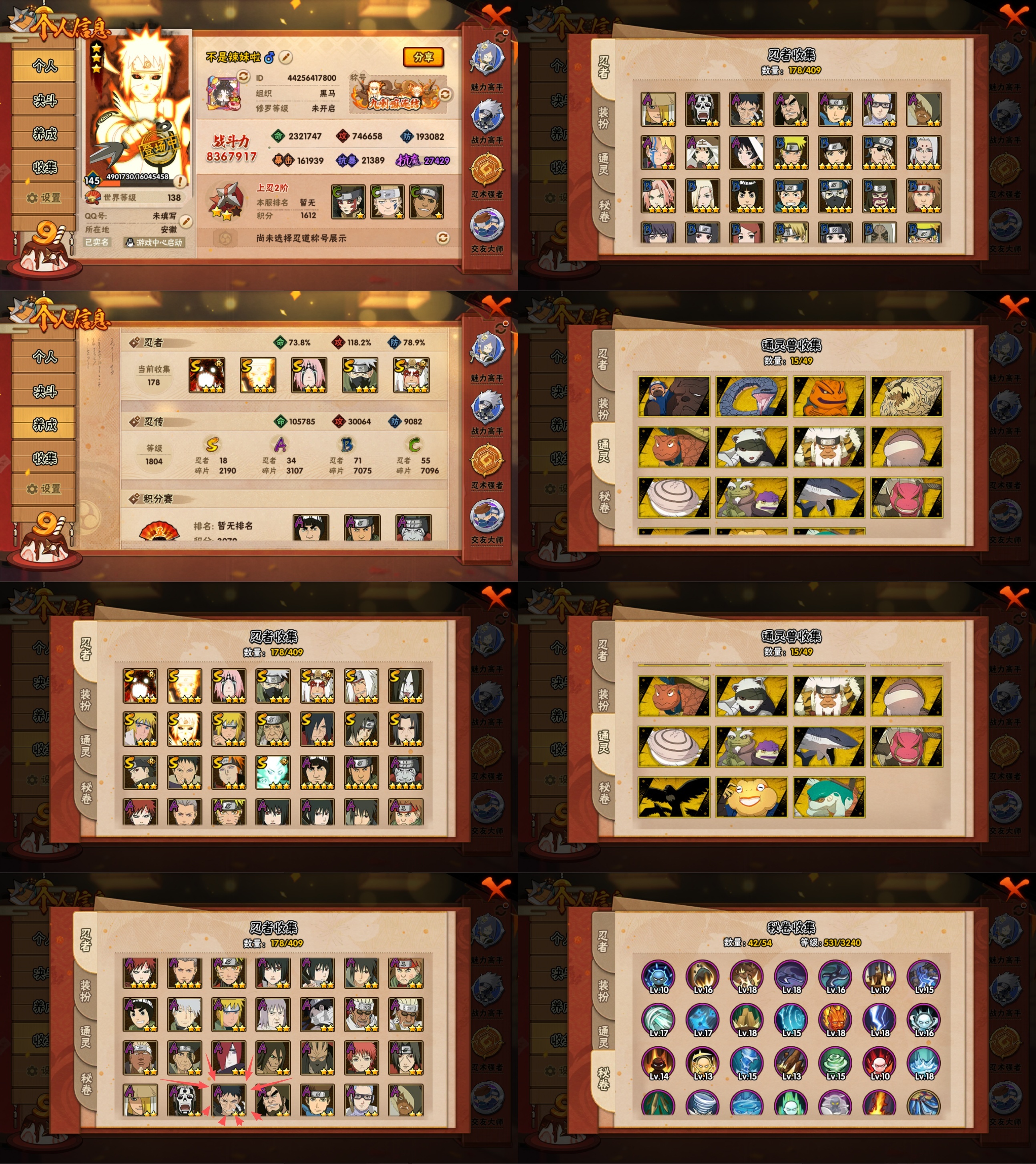 【A忍者】,土台「忍界大战」,长十郎「六代目水影」,漩涡博人「桃式显现」,旗木卡卡西「幻之真容」,李洛克「忍界大战」,蝎「绯流琥」,宇智波泉奈,宇智波带土「漂泊浪客」,神农「羁绊」,桃地再不斩「秽土转生」,角都「秽土转生」,长门「青年」,艾「青年」,达鲁伊「五代目雷影」,波风水门「青年」,奇拉比「忍界大战」,宇智波佐助「须佐能乎」,千代「近松十人卫」,秋道丁次「忍界大战」,宇智波佐助「万花筒写轮眼」,奇拉比,漩涡鸣人「仙人模式」,飞段「死司凭血」,飞段,迪达拉,我爱罗「疾风传」,蝎,干柿鬼鲛,宇智波鼬,猿飞阿斯玛,迈特凯,